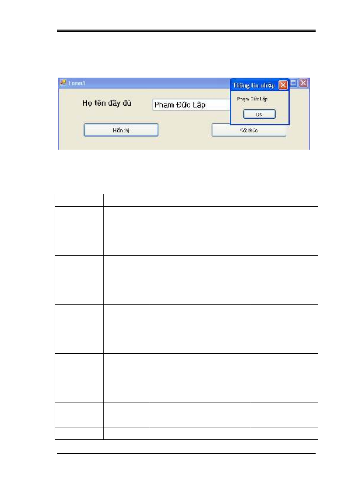 quả nhờ biến. Chương trình gồm một ô textBox cho nhập tên. Khi người dùng click vào