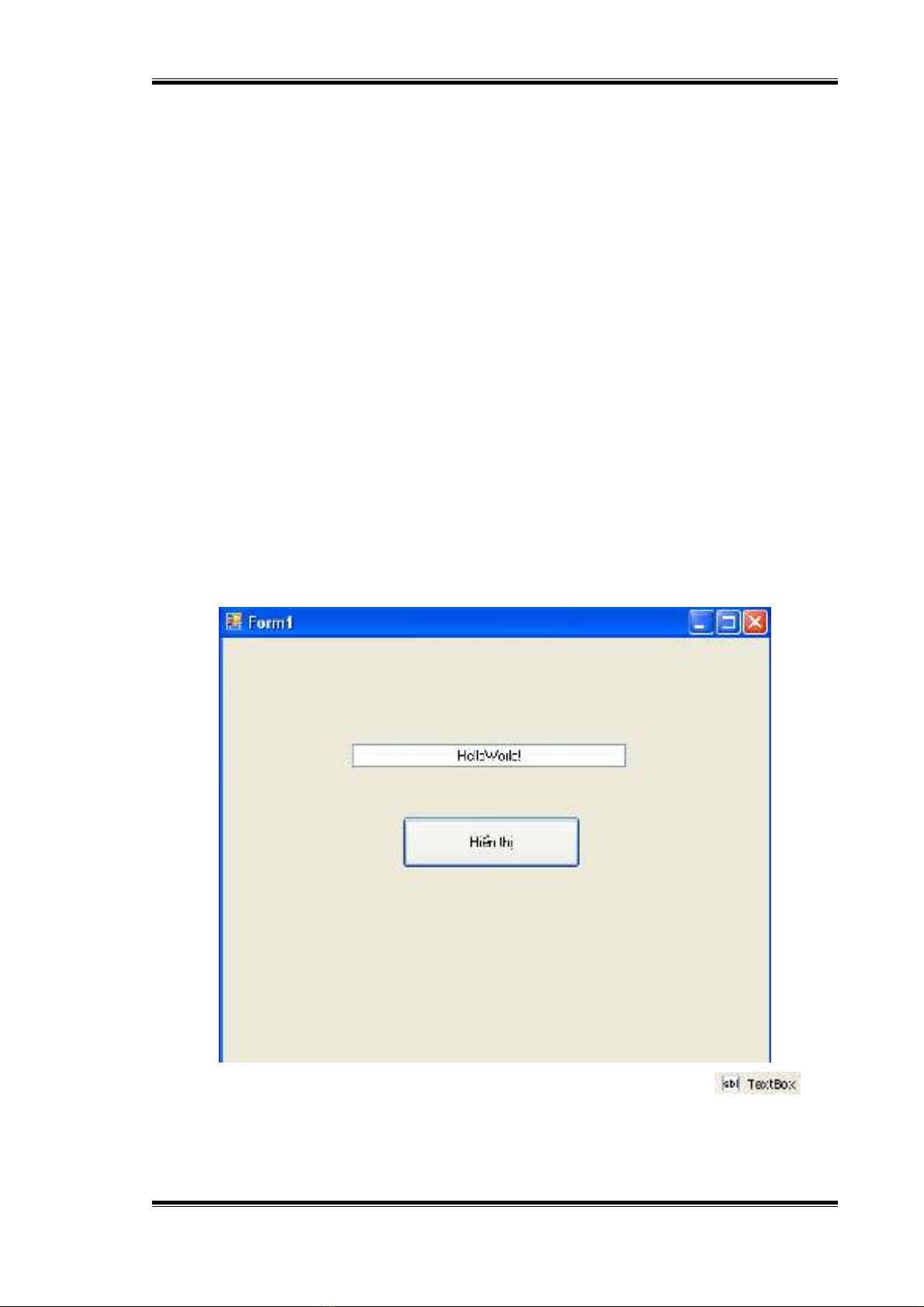 TOOLBOX và một button. Khi chương trình chạy, click vào button hiển thị để textbox