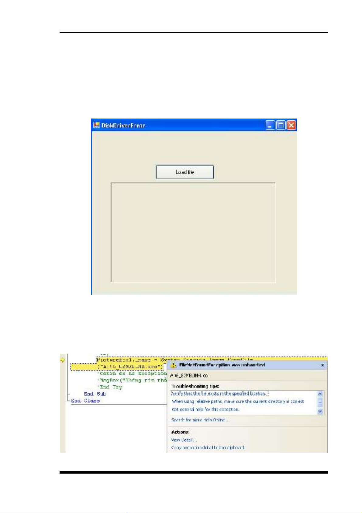 đã được đặt ở trong khối Try…Catch nên khi chạy chương sẽ thực thi hiện thông báo thay