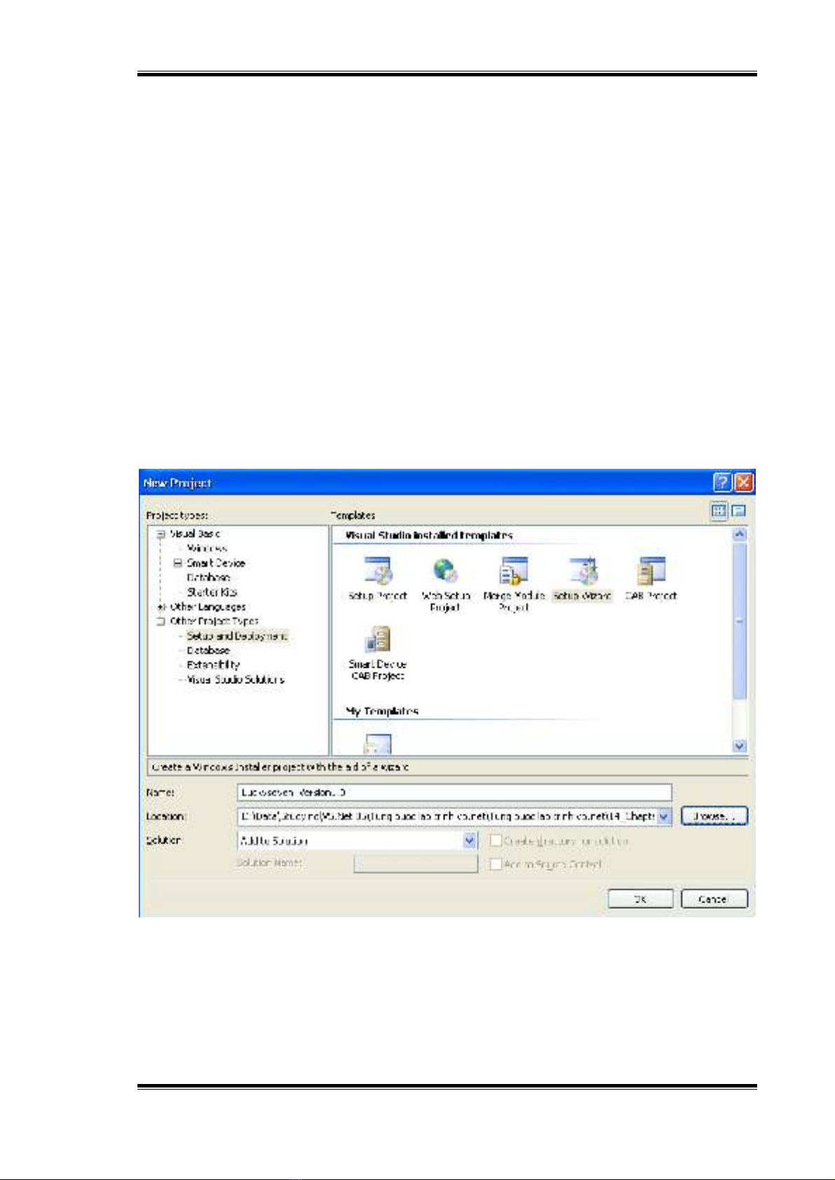 Chọn Other Project Types và chọn Setup and Deployment. Có 6 mẫu phía bên phải