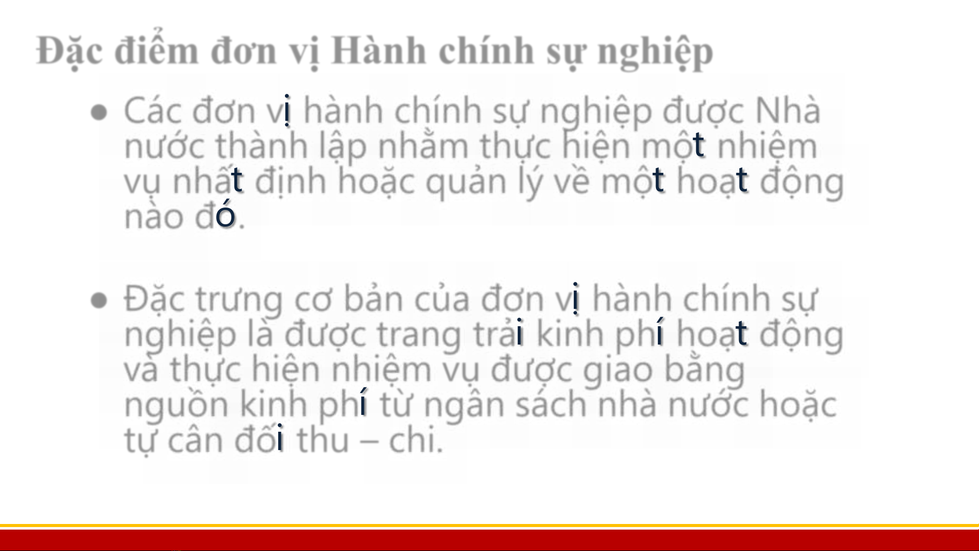 Đặc điểm đơn vị Hành chính sự nghiệp