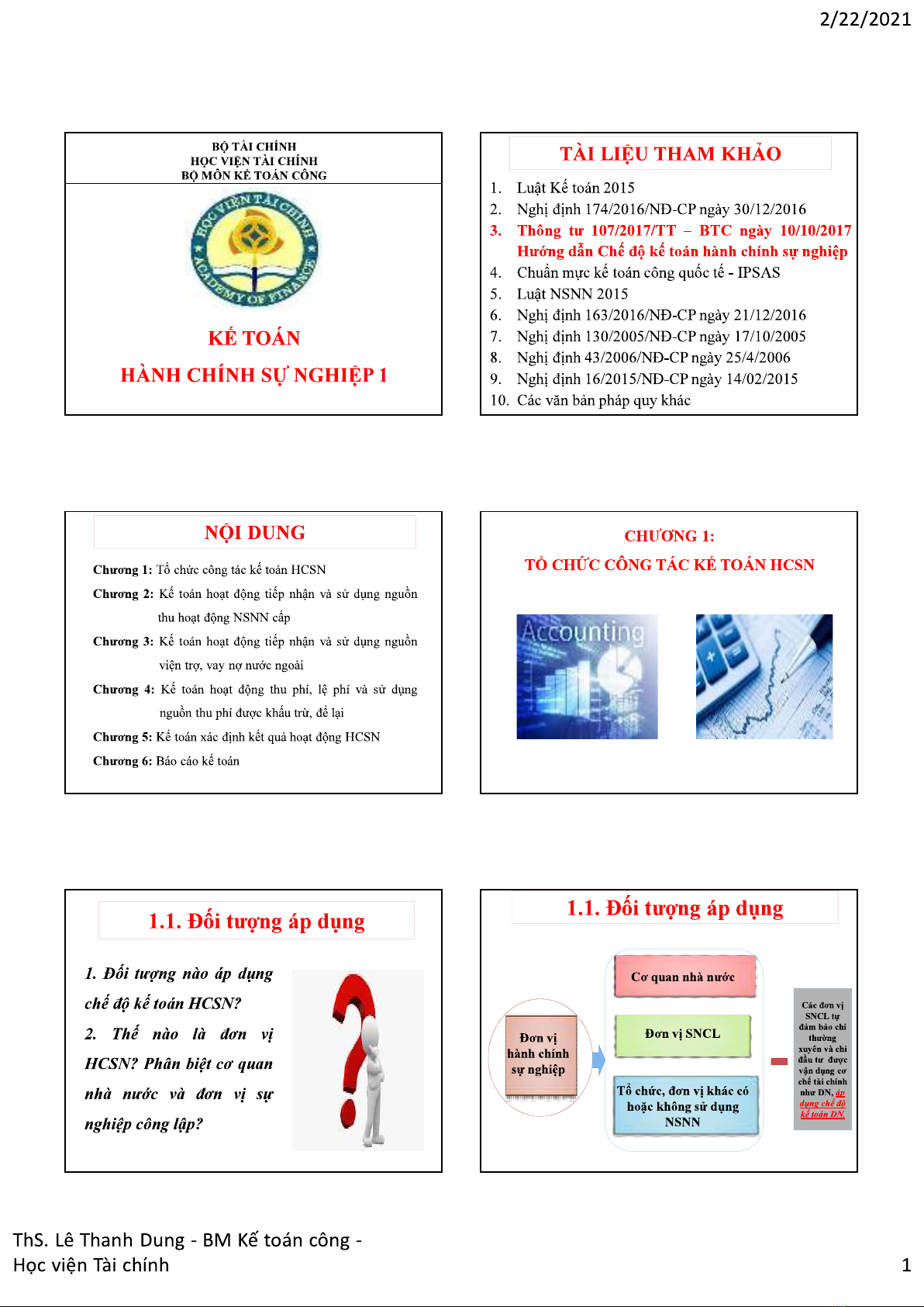 Bài giảng Kế toán hành chính sự nghiệp 1 - ThS. Lê Thanh Dung