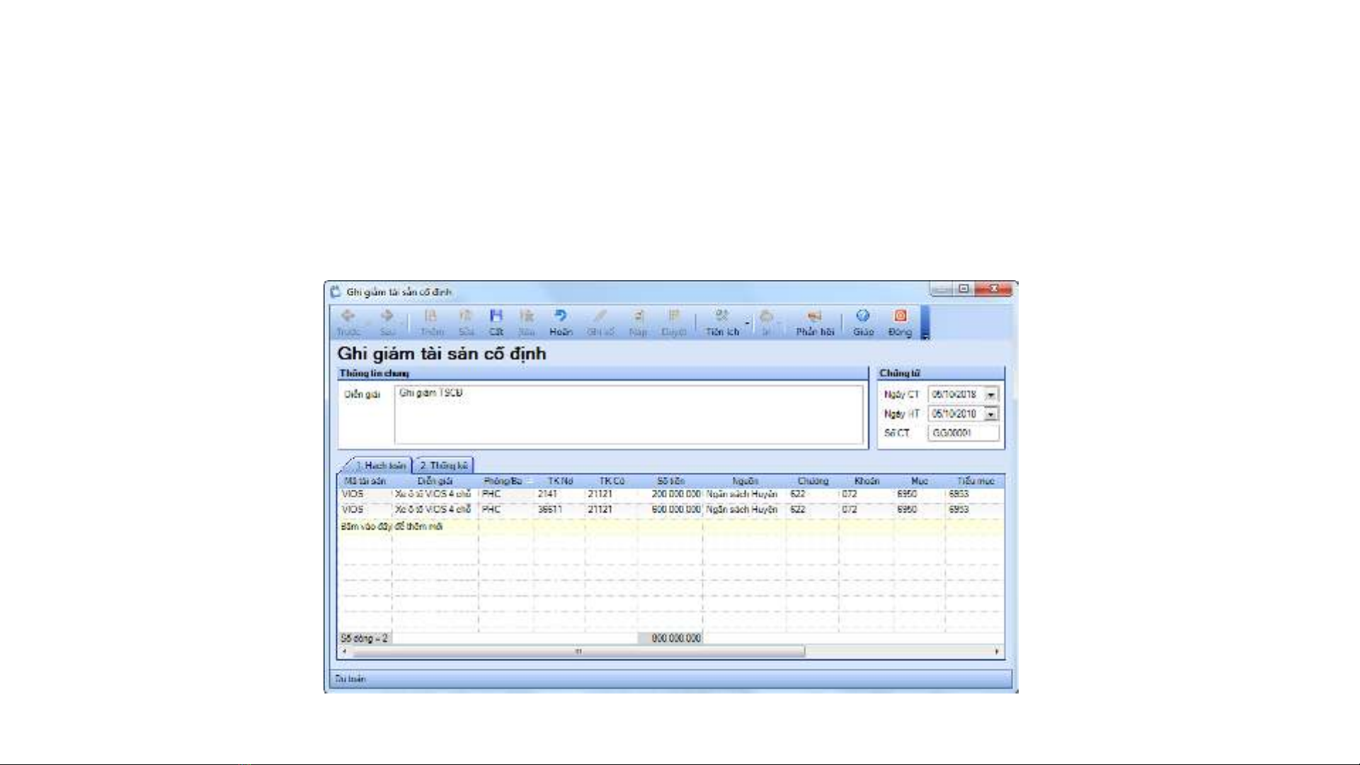 2. Khai báo chứng từ Ghi giảm tài sản cố định