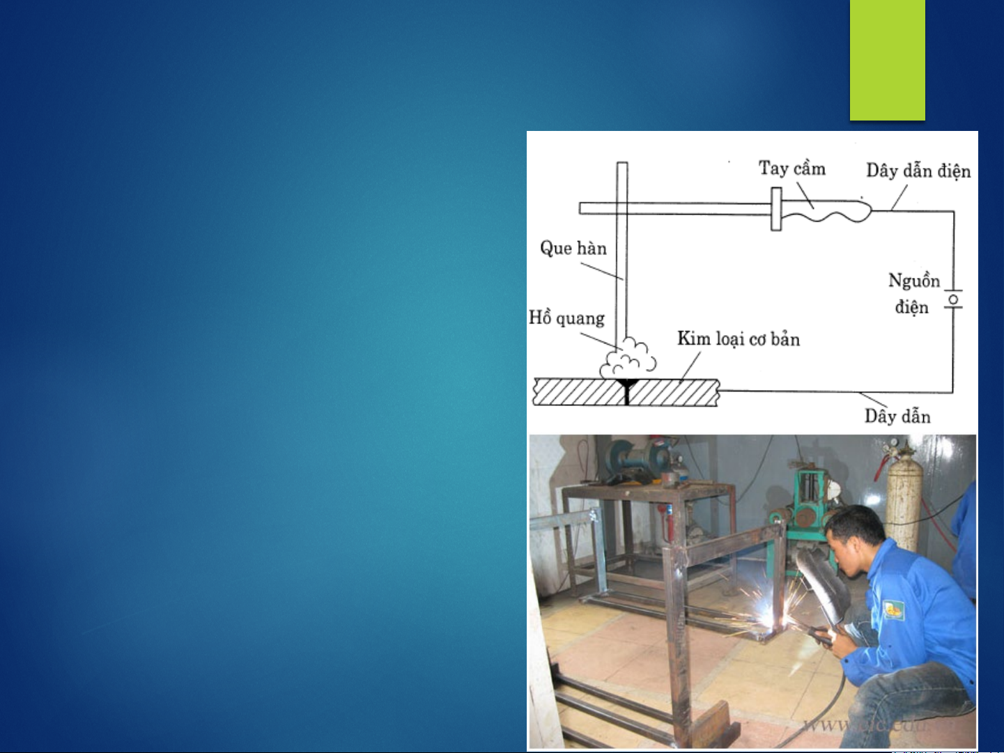 * Hồ quang cháy dưới lớp thuốc hàn nên còn gọi là hàn hồ quang