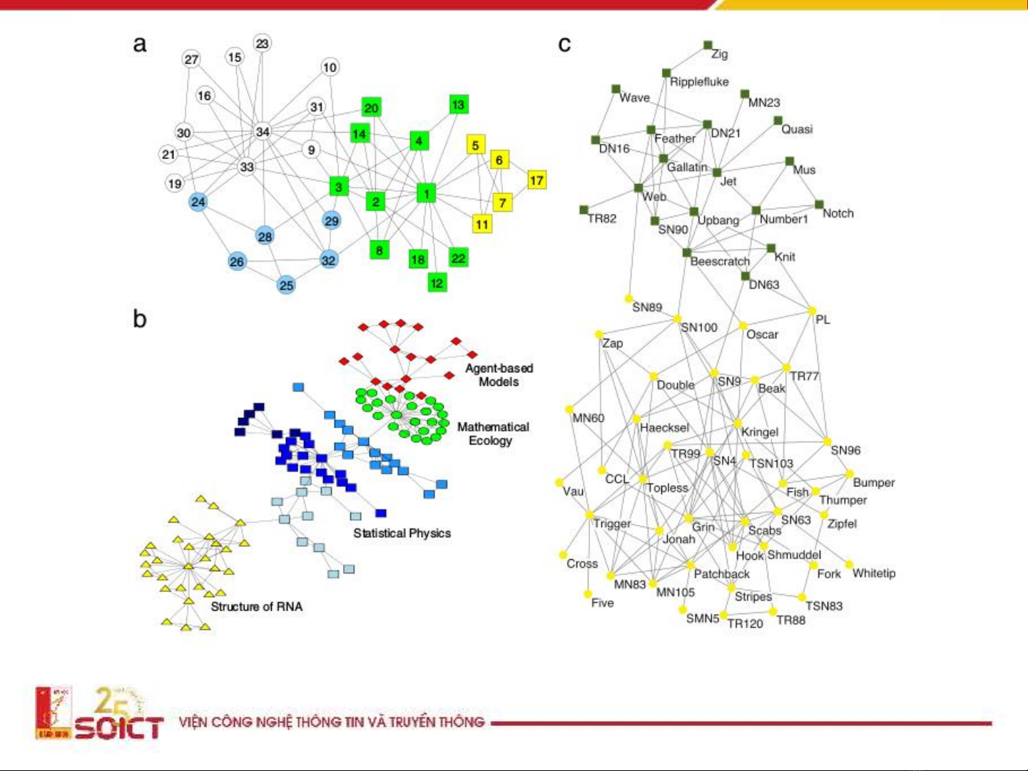 b) Collaboration network between scientists working at the Santa Fe Institute
