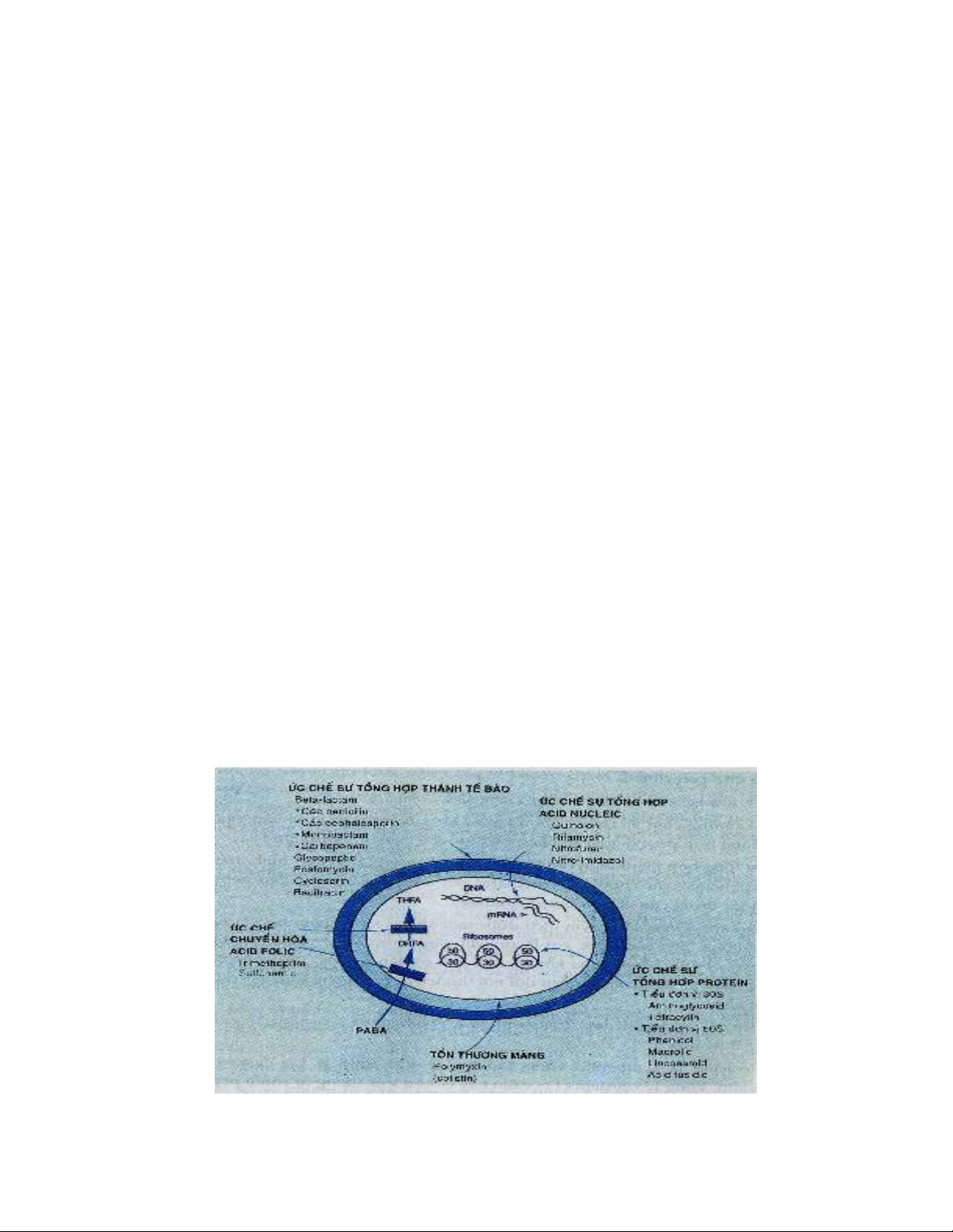 Hình 1: Sơ đồ cơ chế tác động của các họ kháng sinh chính