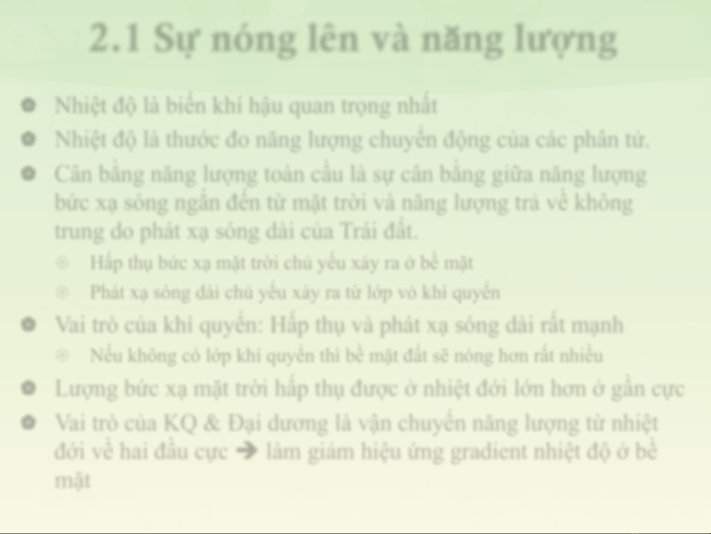 | Vai trò của khí quyển: Hấp thụ và phát xạ sóng dài rất mạnh