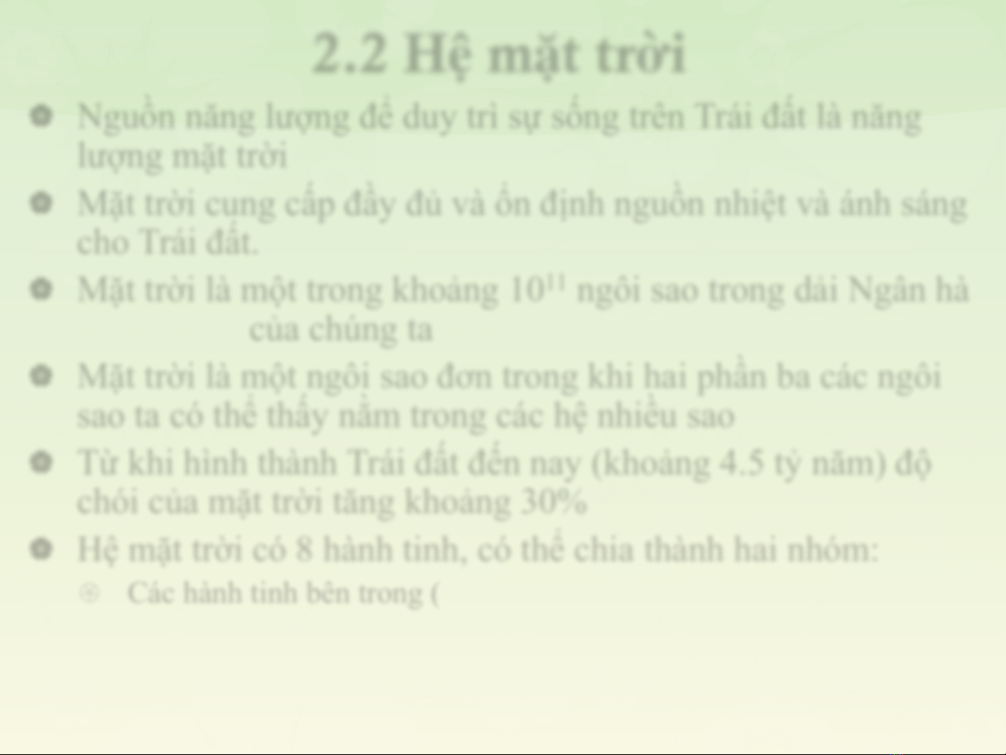 | Nguồn năng lượng để duy trì sự sống trên Trái đất là năng
