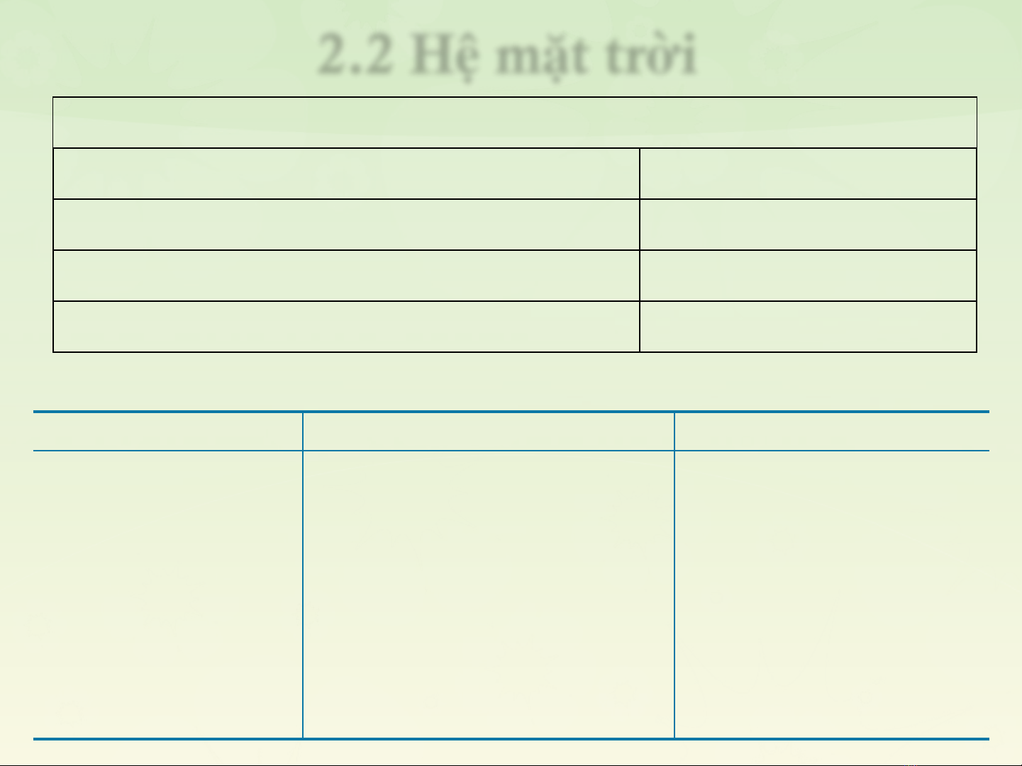 | Hệ mặt trời có 8 hành tinh, có thể chia thành hai nhóm: