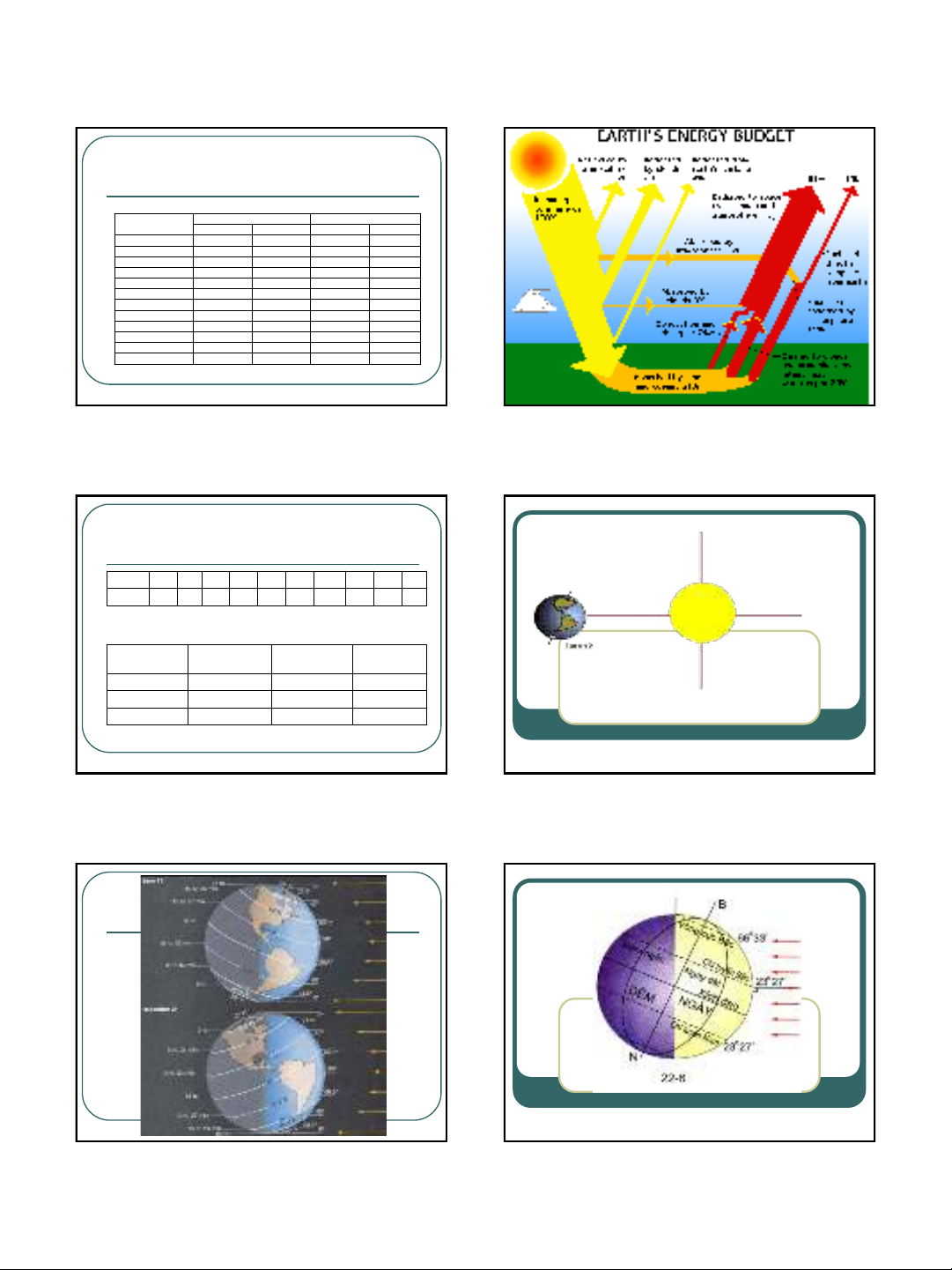 B¶ng 2. Độ cao mÆt trêi và độ dµi ngµy ë c¸c vÜ đé