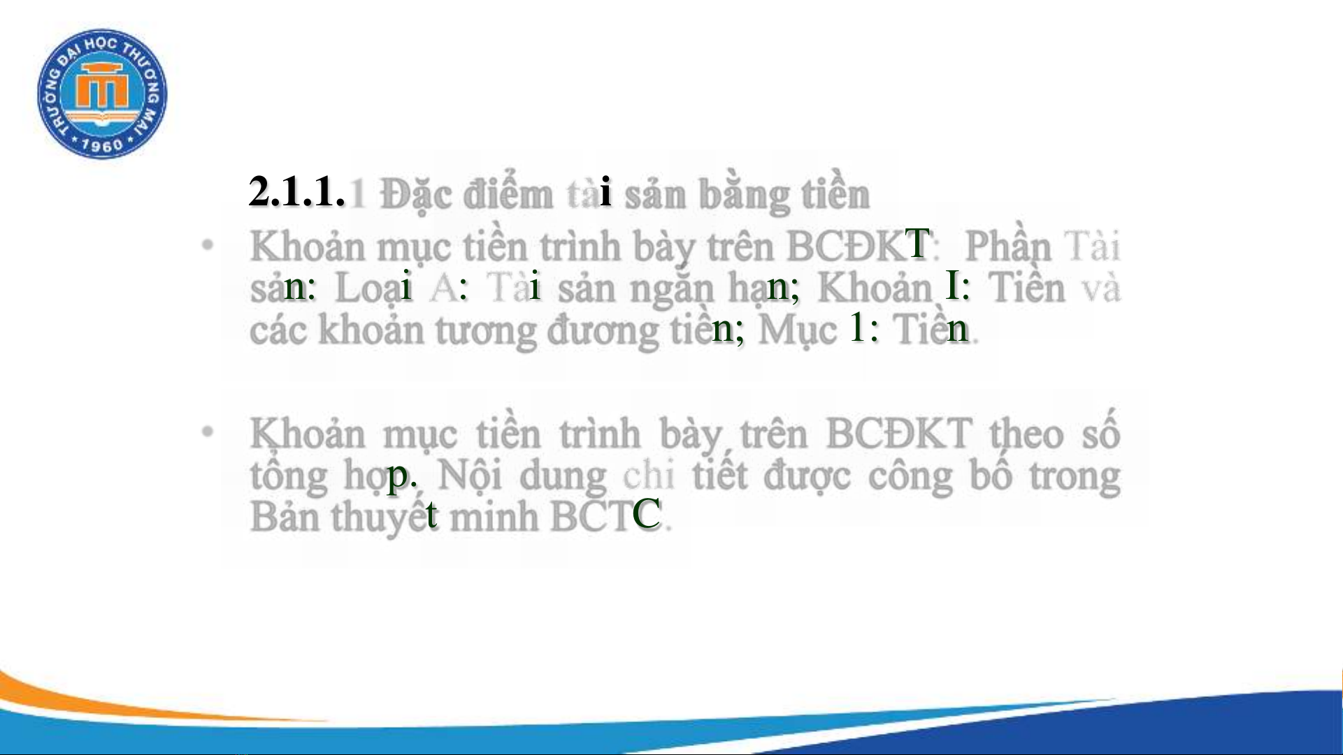 2.1.1.1 Đặc điểm tài sản bằng tiền