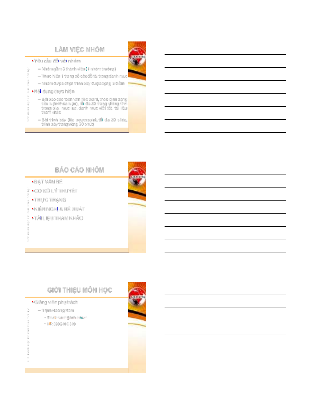 •Bài tập nhóm (tại lớp – 10%): 02 bài
