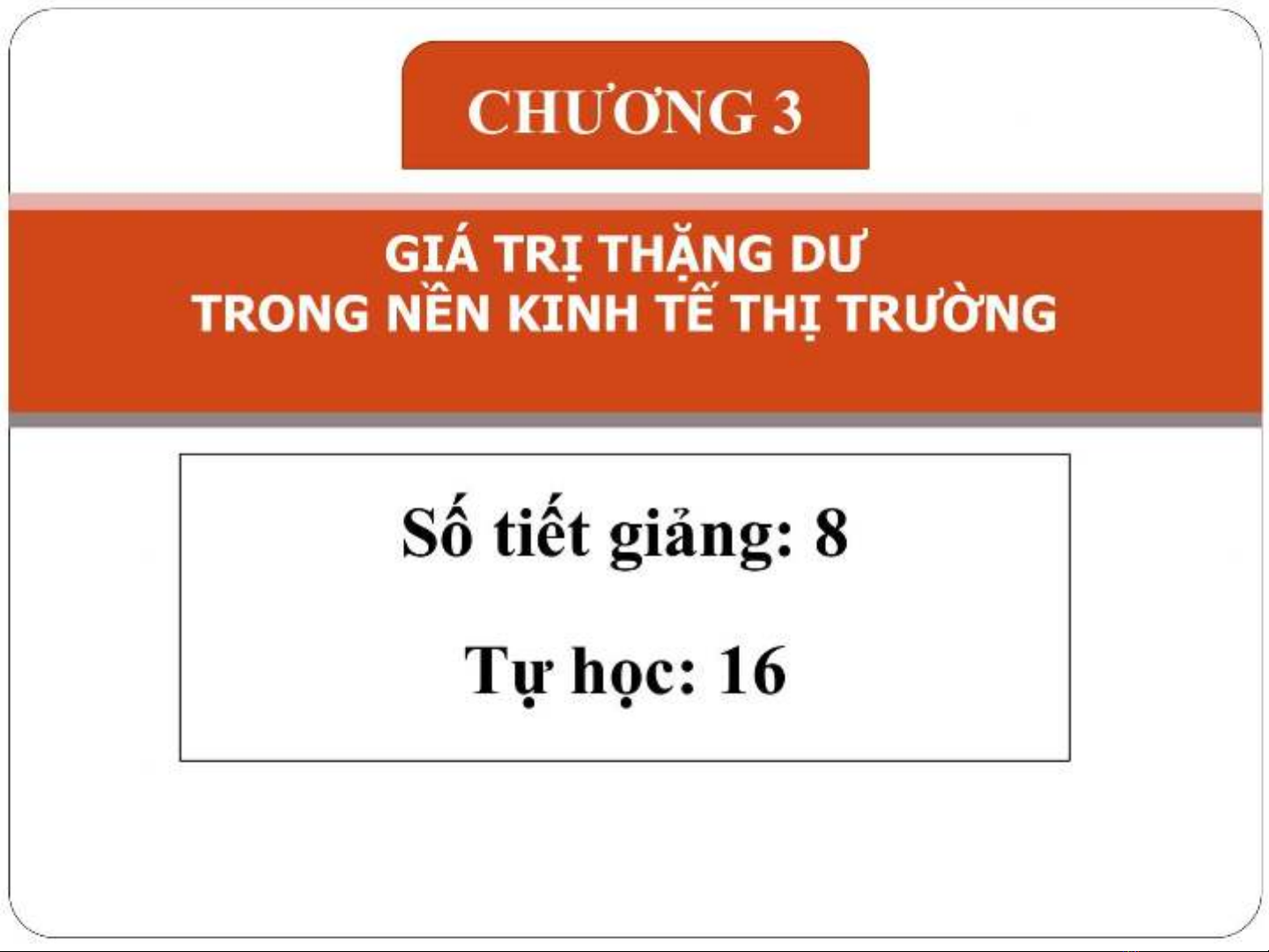 Bài giảng Kinh tế chính trị Mác-Lênin: Chương 3 Giá trị thặng dư trong nền kinh tế thị trường cung cấp cho người học những kiến thức như: Lý luận của C.Mác về giá trị thặng dư; Tích lũy tư bản; Các hình thức biểu hiện của giá trị thặng dư trong nền kinh tế thị trường.