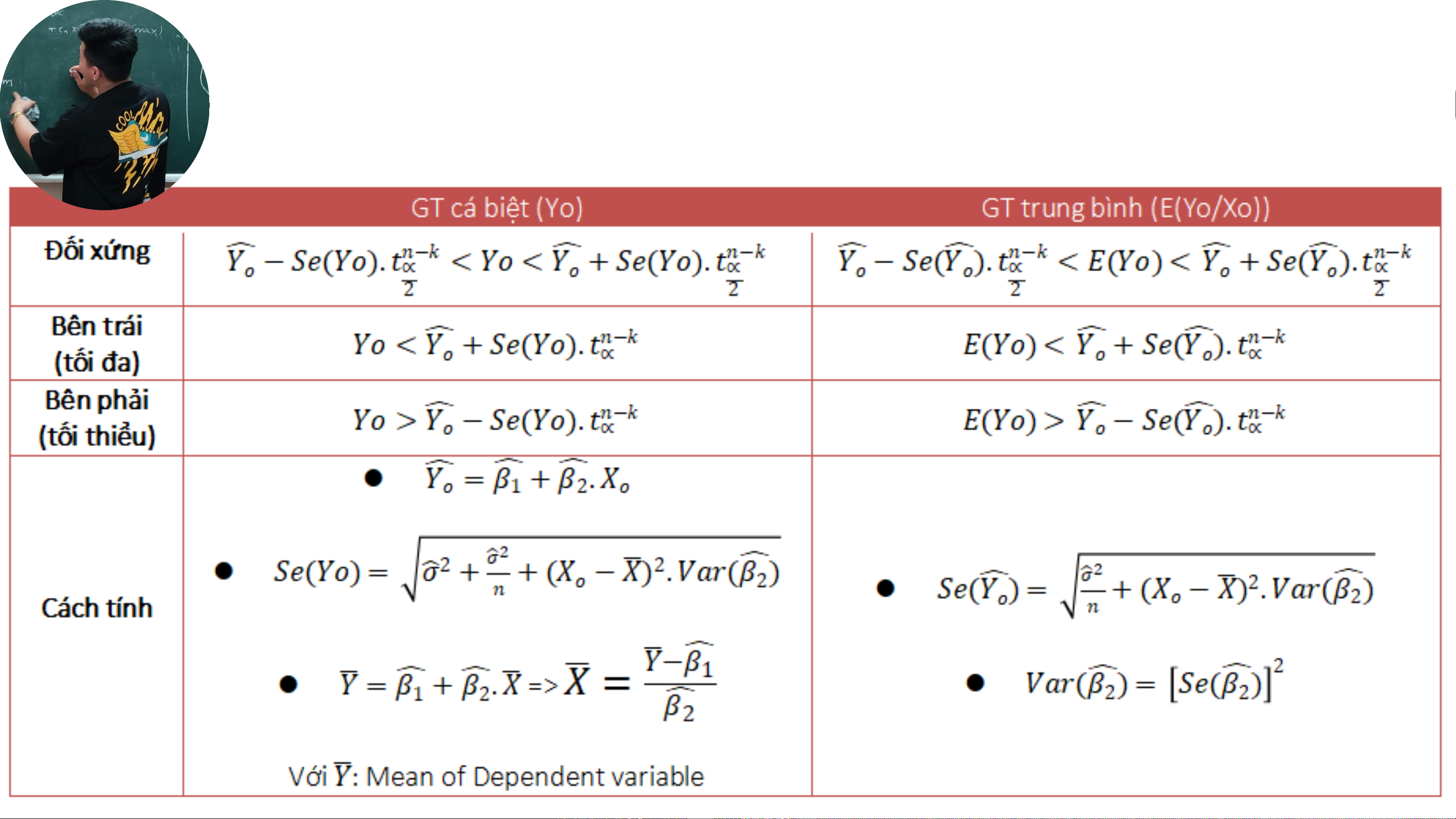 Tài liệu học thuật này cung cấp một cái nhìn tổng quan toàn diện về các kỹ thuật dự báo, đặc biệt tập trung vào phân tích hồi quy đơn và hồi quy bội, cũng như vai trò của các hàm logarit. Nội dung bắt đầu bằng việc thiết lập các mục tiêu cốt lõi của dự báo: xác định các giá trị cá biệt (Yo) và giá trị trung bình (E(Yo)) khi biết một tập hợp các biến độc lập (X=Xo). Sau đó, tài liệu phân biệt giữa dự báo hồi quy đơn (k=2) và dự báo hồi quy bội (k>2), nhấn mạnh rằng các công thức cơ bản để tính toán các dự đoán cá biệt và trung bình phần lớn vẫn nhất quán giữa hai loại này, bất chấp sự phức tạp tăng lên trong các tương tác biến số đối với hồi quy bội. Các phương pháp luận chính được trình bày chi tiết bao gồm tính toán khoảng dự báo cho các kịch bản đối xứng, tối đa (bên trái) và tối thiểu (bên phải), điều này rất quan trọng để hiểu rõ phạm vi các kết quả tiềm năng. Các đại lượng thống kê cụ thể như Se(Yo) và Var(B2) được trình bày với các công thức tương ứng, bao gồm cả dạng ma trận cho hồi quy bội, điều này nhấn mạnh cách tiếp cận định lượng nghiêm ngặt. Hơn nữa, tài liệu còn đề cập đến ứng dụng của các dạng hàm logarit, thường được sử dụng để tuyến tính hóa các mối quan hệ phi tuyến tính, chuẩn hóa dữ liệu hoặc mô hình hóa tốc độ tăng trưởng trong các ứng dụng kinh tế và thống kê. Giá trị thực tiễn của các phương pháp này nằm ở khả năng cung cấp các ước tính đáng tin cậy, đánh giá độ tin cậy của các hệ số mô hình và giảm thiểu các vấn đề tiềm ẩn trong phân tích kinh tế lượng, từ đó cho phép dự đoán chính xác và đáng tin cậy hơn cho nhiều vấn đề thực tế.