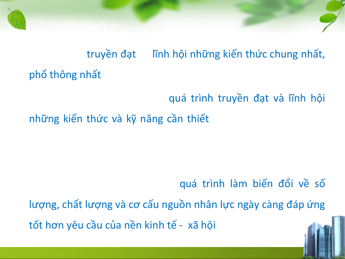 ❖Giáo dục: là truyền đạt và lĩnh hội những kiến thức chung nhất,