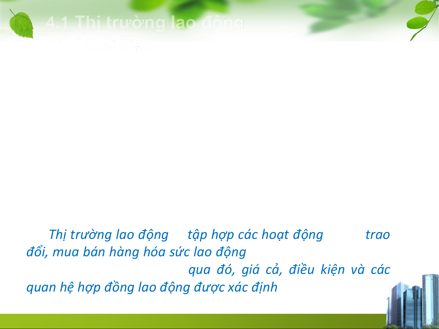=> Thị trường lao động là tập hợp các hoạt động nhằm trao
