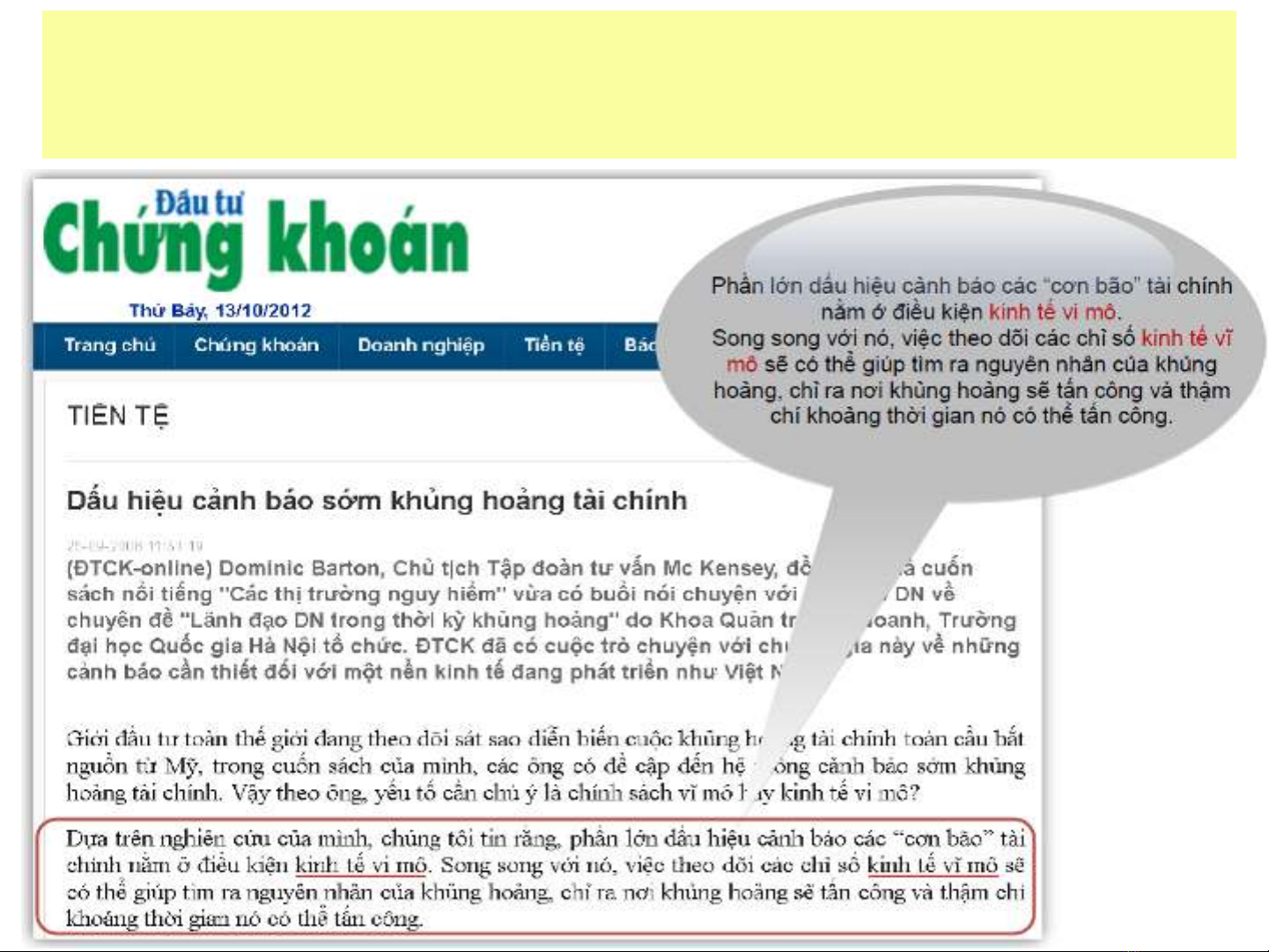 Chu& tich tâp đoan Mc Kensey noi vê KT Vi Mô va