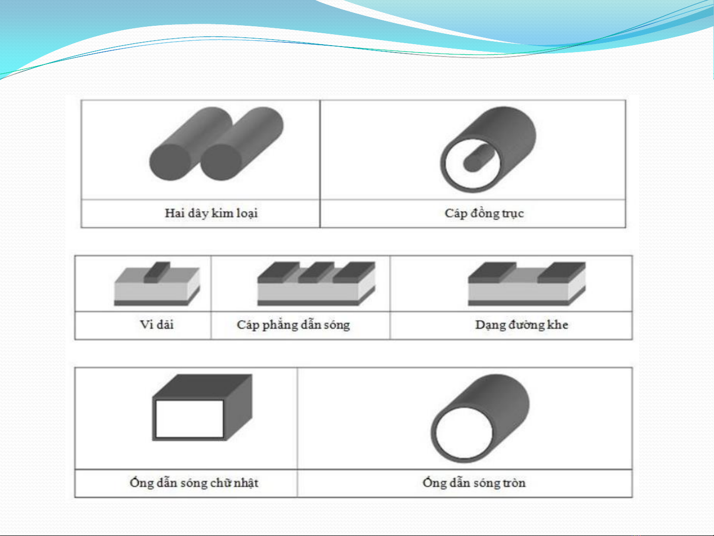 truyền vi dải, ống dẫn sóng, cáp quang …