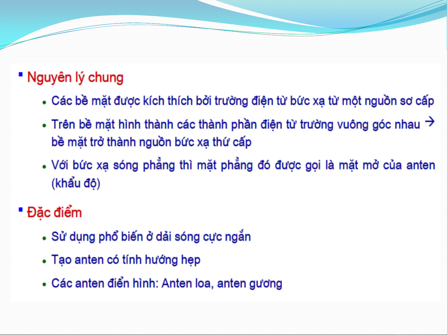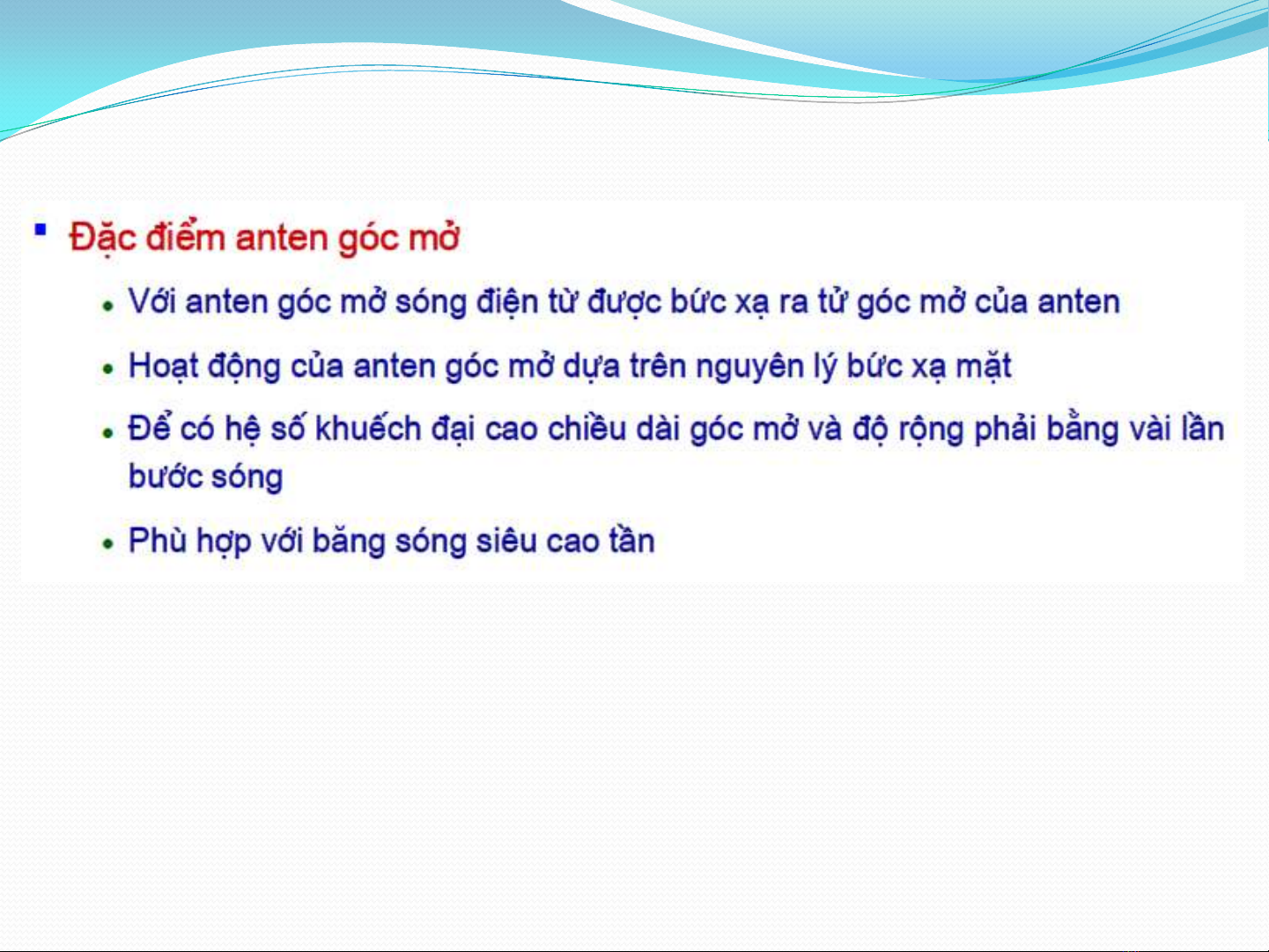 Bài giảng Kỹ thuật anten và truyền sóng: Chương 7 Anten góc mở cung cấp cho người học những kiến thức như: Giới thiệu; Nguyên lý bức xạ; Anten loa; Anten gương; Anten vi dải. Mời các bạn cùng tham khảo!