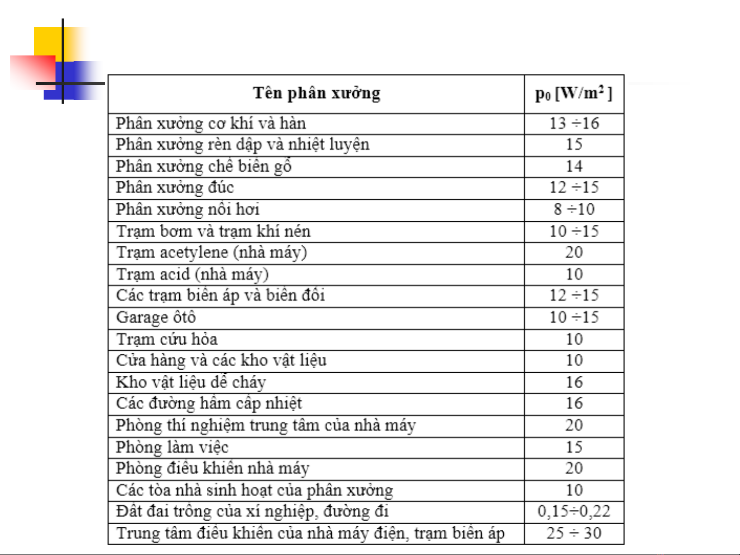 - p0:suất phụ tải chiếu sáng trên đơn vị diện tích