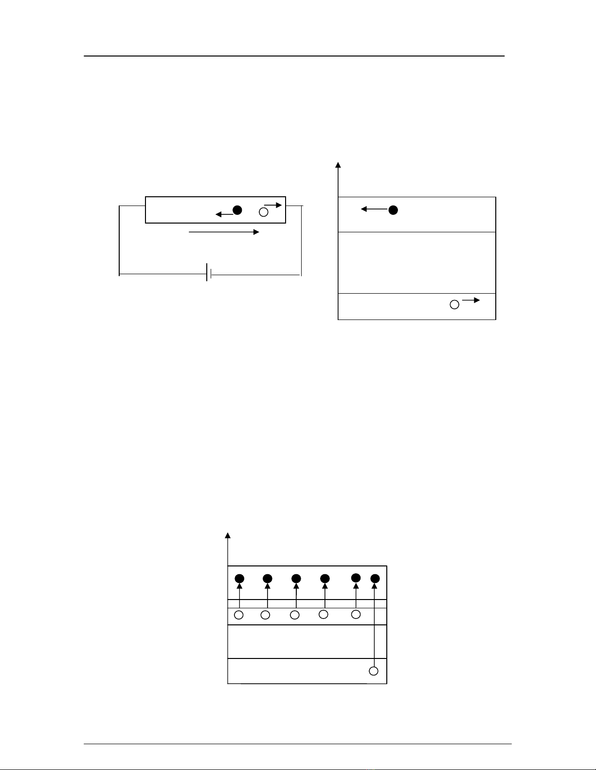 Hình 1.2. Sự di chuyể n củ a điệ n tử v à lỗ trố ng trong Si khi có nguồ n điệ n