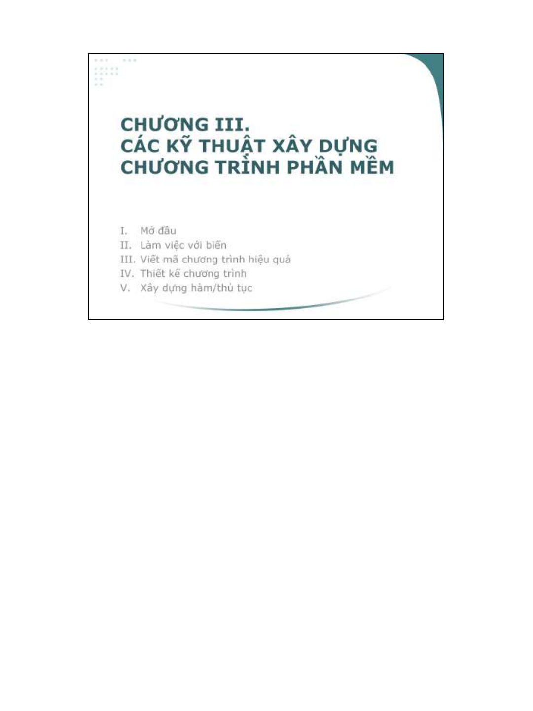 Bài giảng "Kỹ thuật lập trình - Chương 3: Các kỹ thuật xây dựng chương trình phần mềm" cung cấp cho người học các kiến thức: Mở đầu, làm việc với biến, viết mã chương trình hiệu quả. Mời các bạn cùng tham khảo nội dung chi tiết.