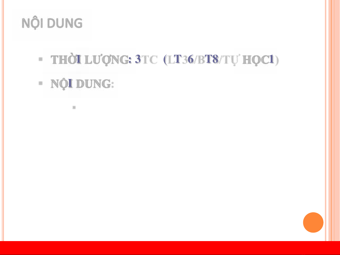 THỜI LƯỢNG: 3TC (LT36/BT8/TỰ HỌC1)