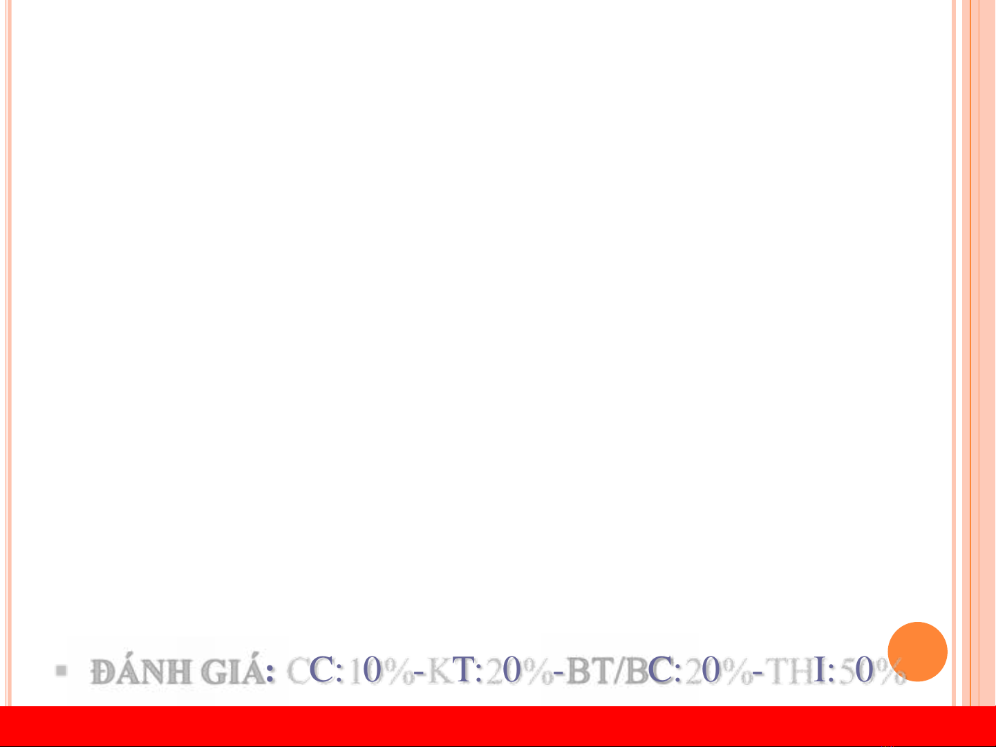 ĐÁNH GIÁ:CC:10%-KT:20%-BT/BC:20%-THI:50%