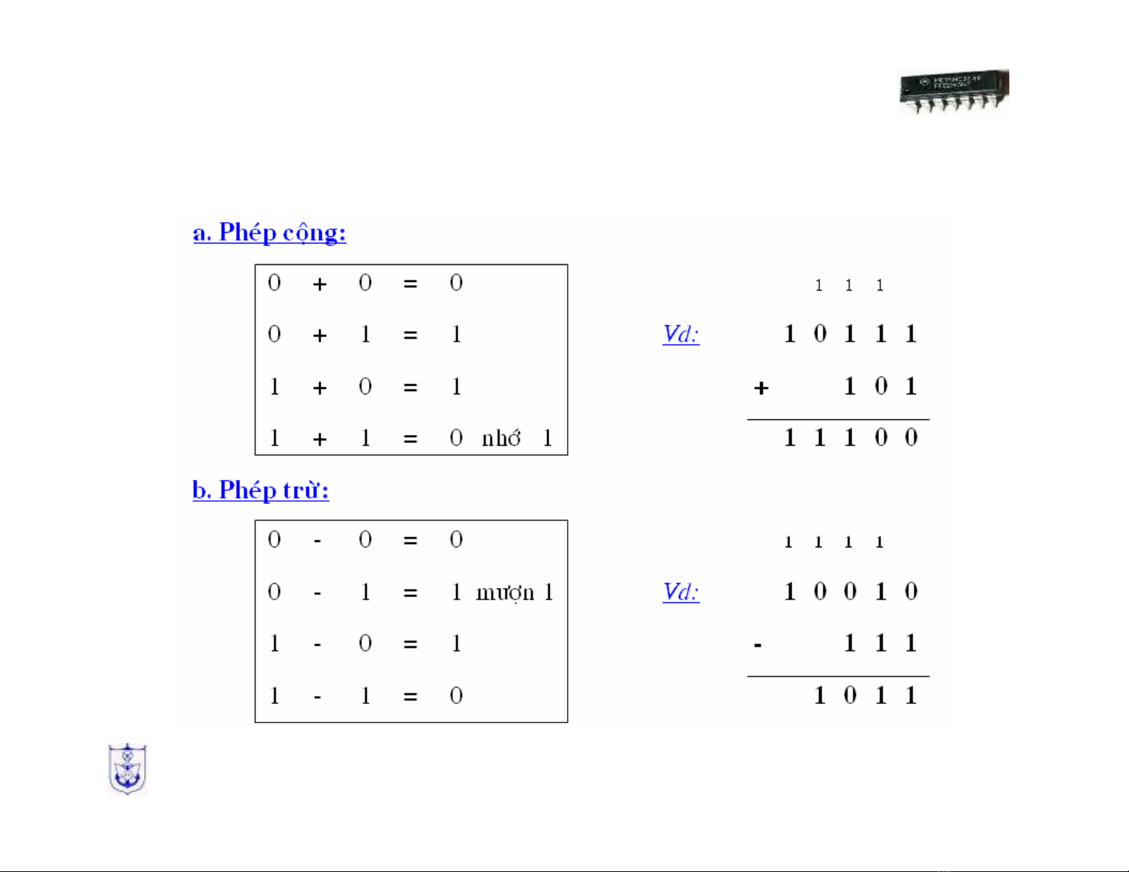 • Phép toán sốnhịphân không dấu