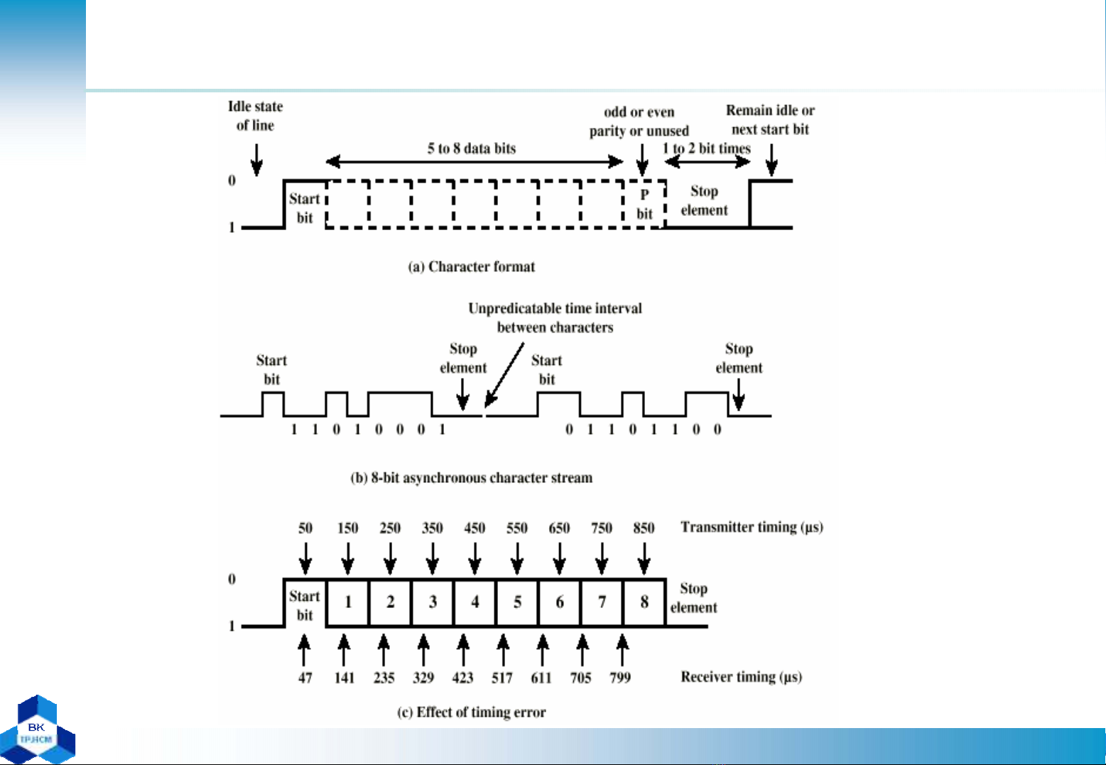 –Bất đồng bộ: mỗi ký tự được đồng bộbởi start và stop bit