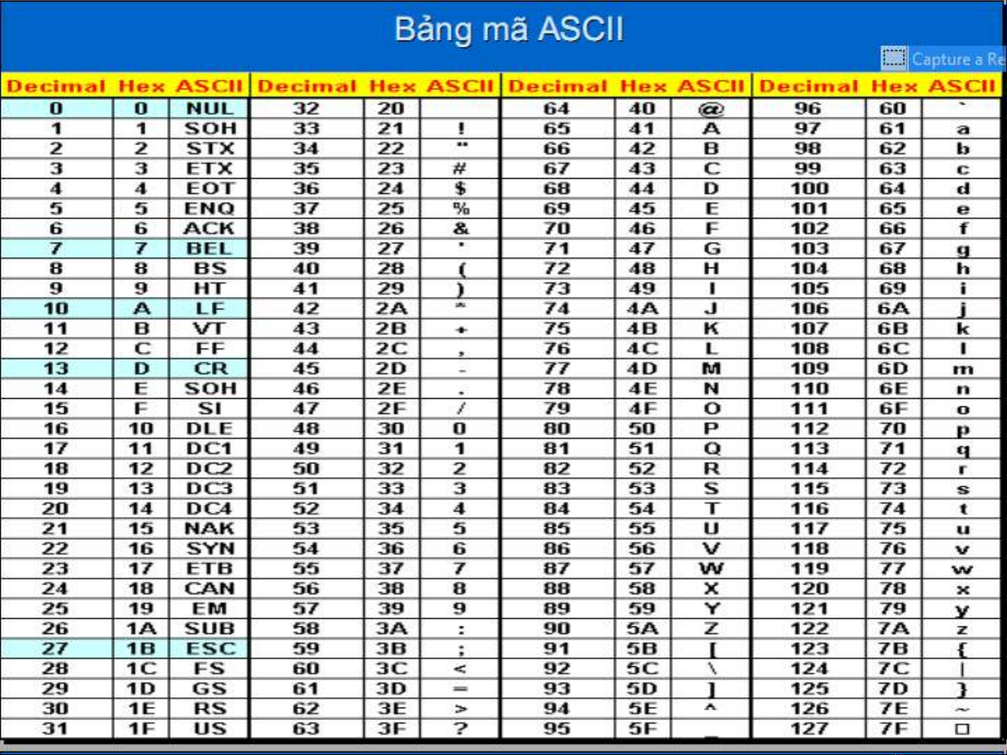• A…Z năm liên tiêp nhau, vaA comaASCII