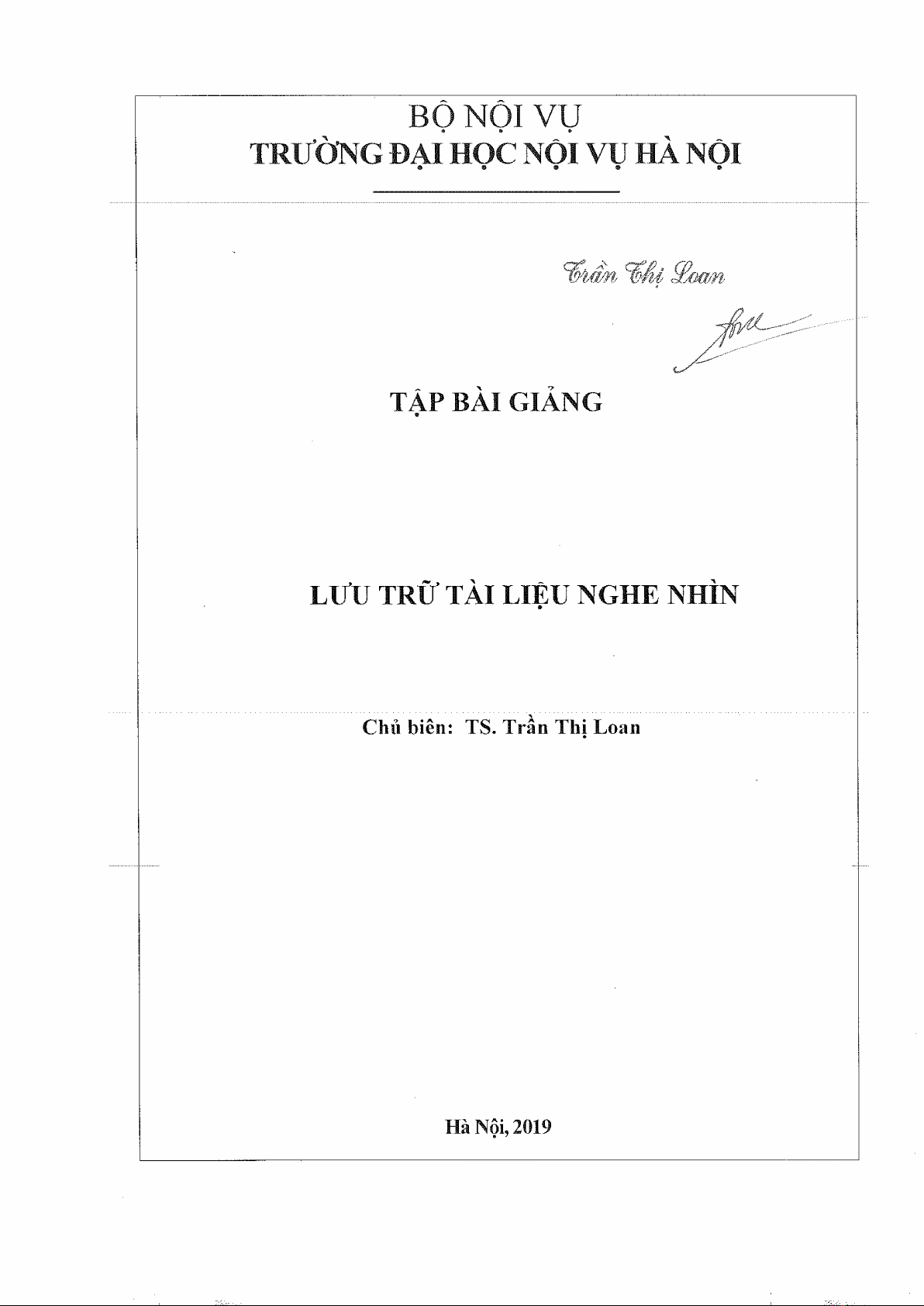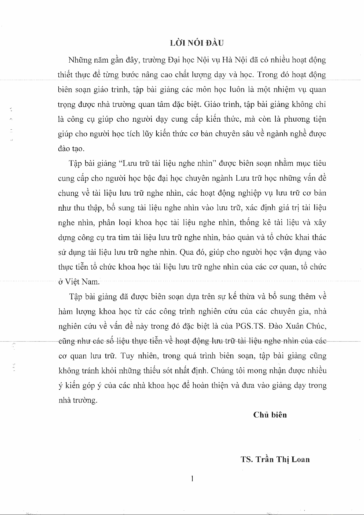 Bài giảng Lưu trữ tài liệu nghe nhìn: Phần 1 - TS. Trần Thị Loan