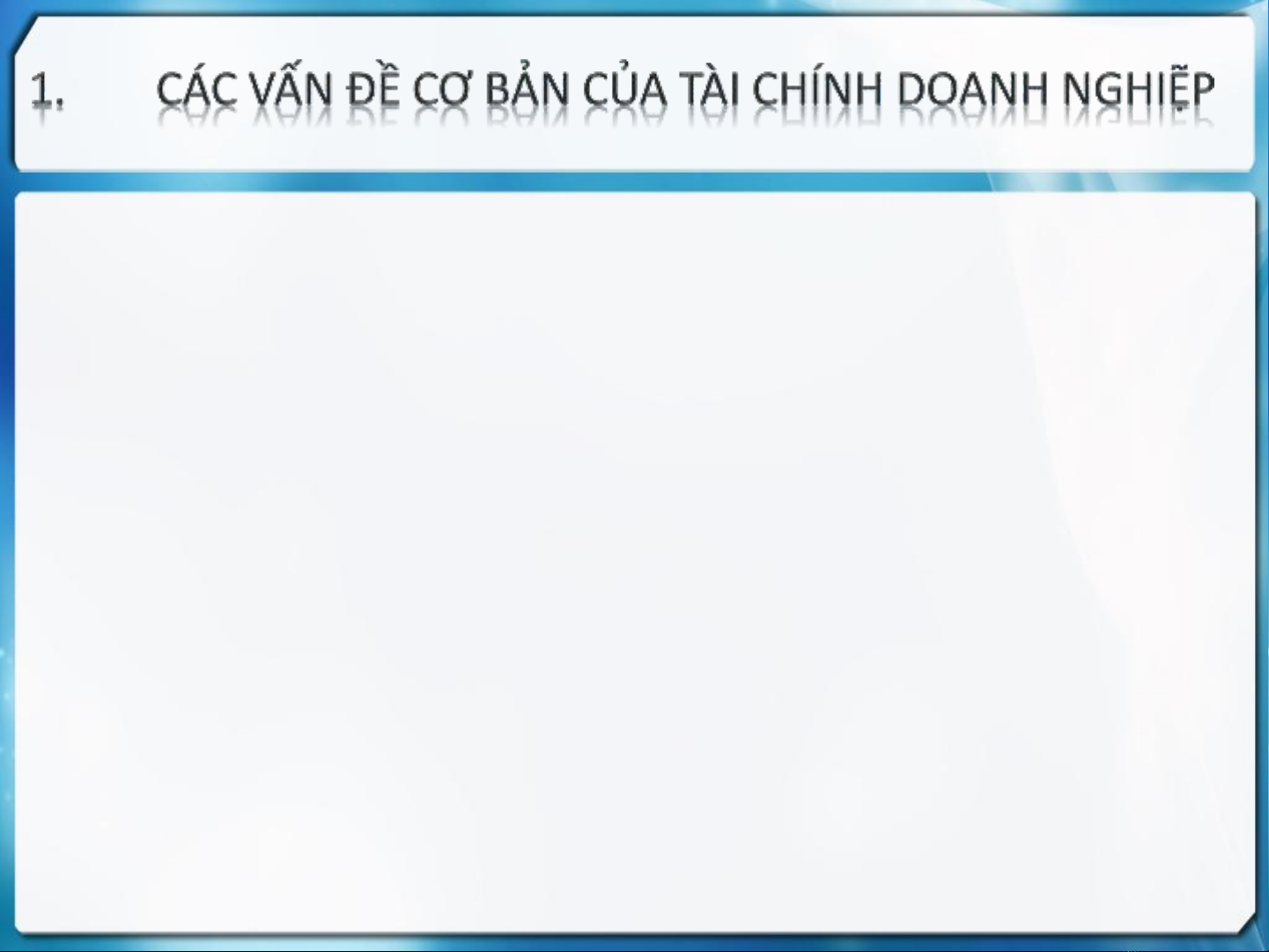 1. Các vấn đề cơ bản của tài chính doanh nghiệp