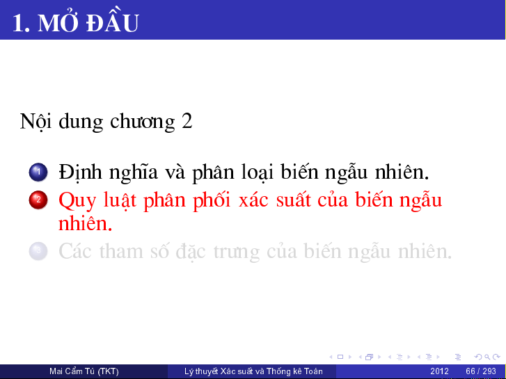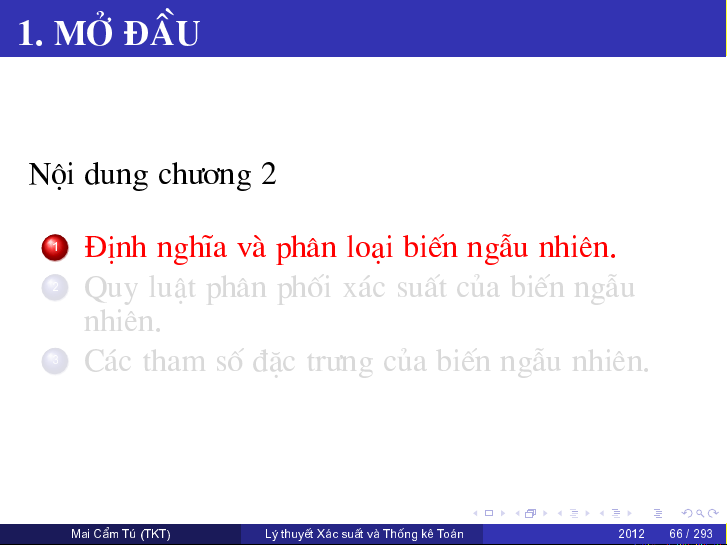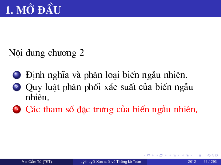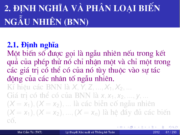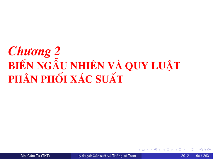 Mai CÈm Tó (TKT) Lý thuyÕt X¸ suÊt vµ Thèng kª To¸n 2012 67 / 293