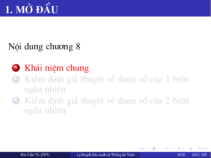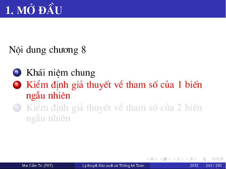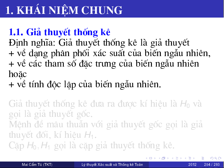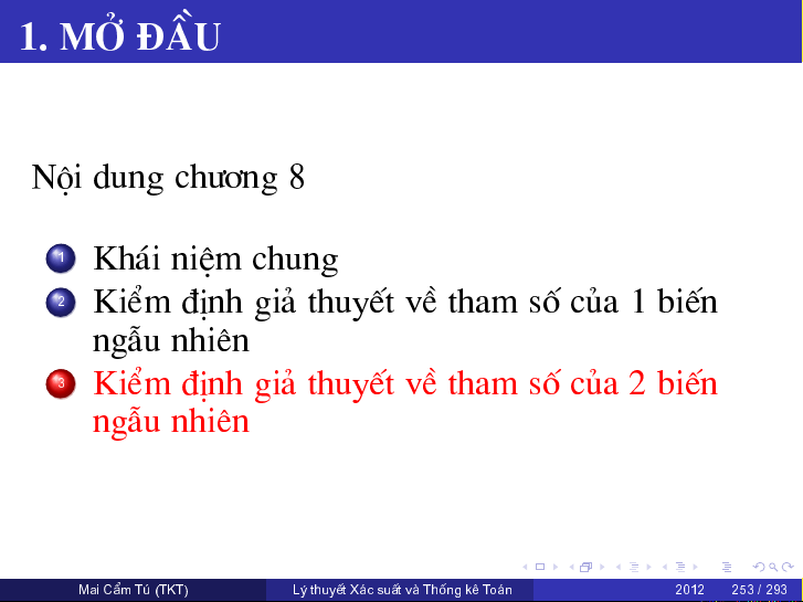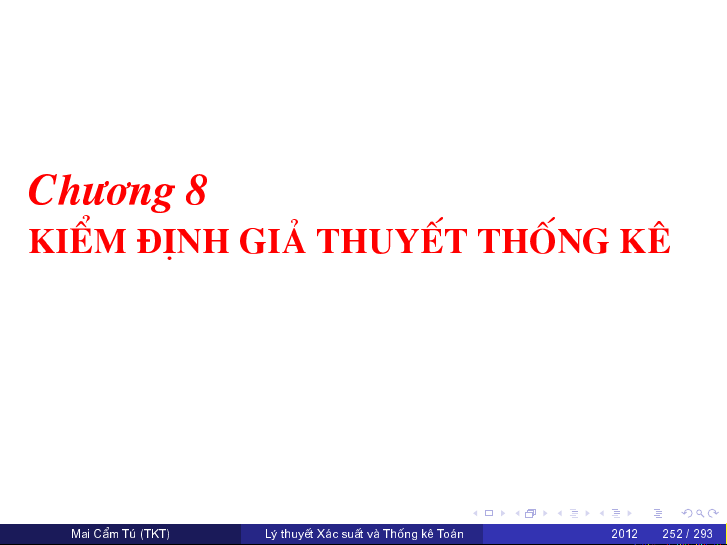 Mai CÈm Tó (TKT) Lý thuyÕt X¸ suÊt vµ Thèng kª To¸n 2012 254 / 293