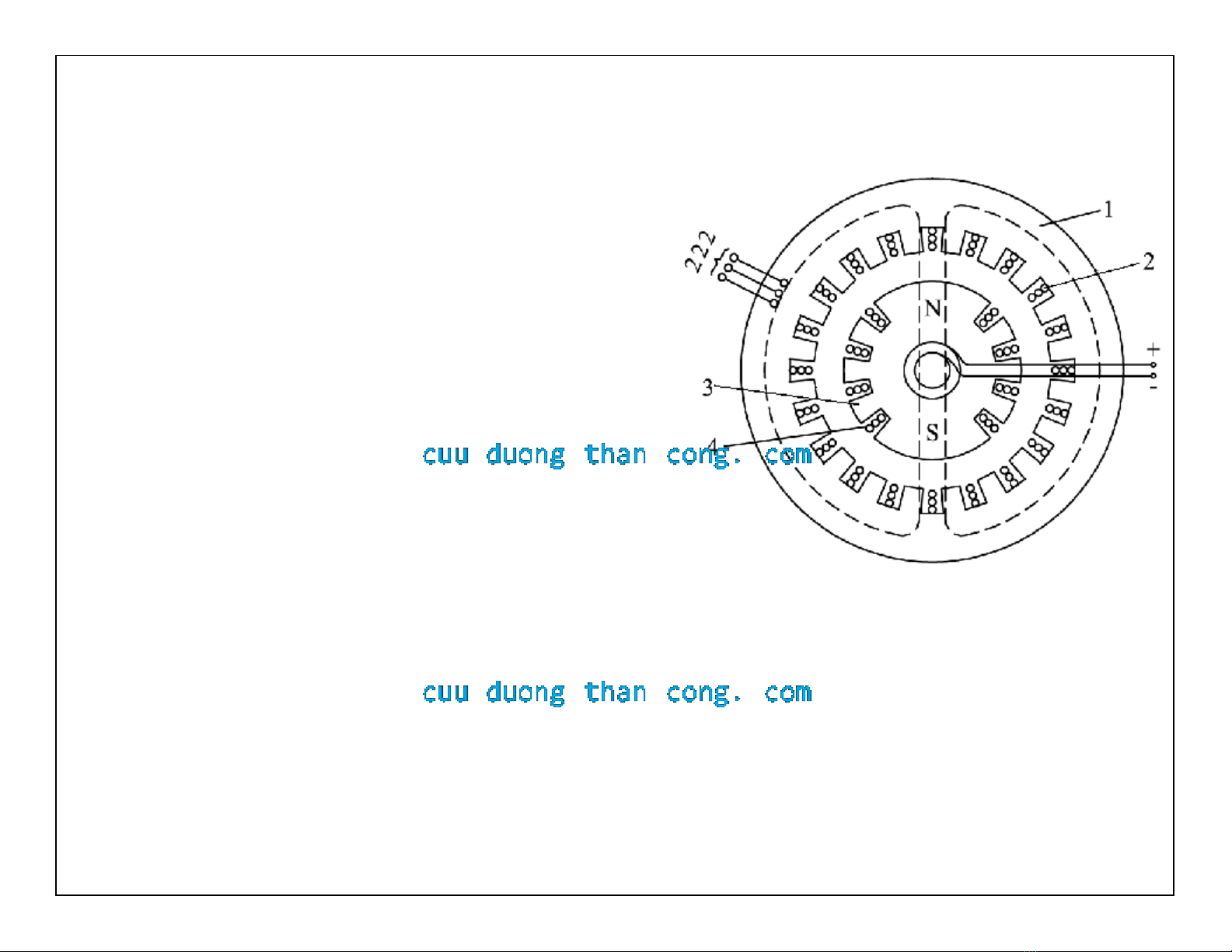 - dây quấn rôto được kích thích bằng dòng điện 1 chiều.