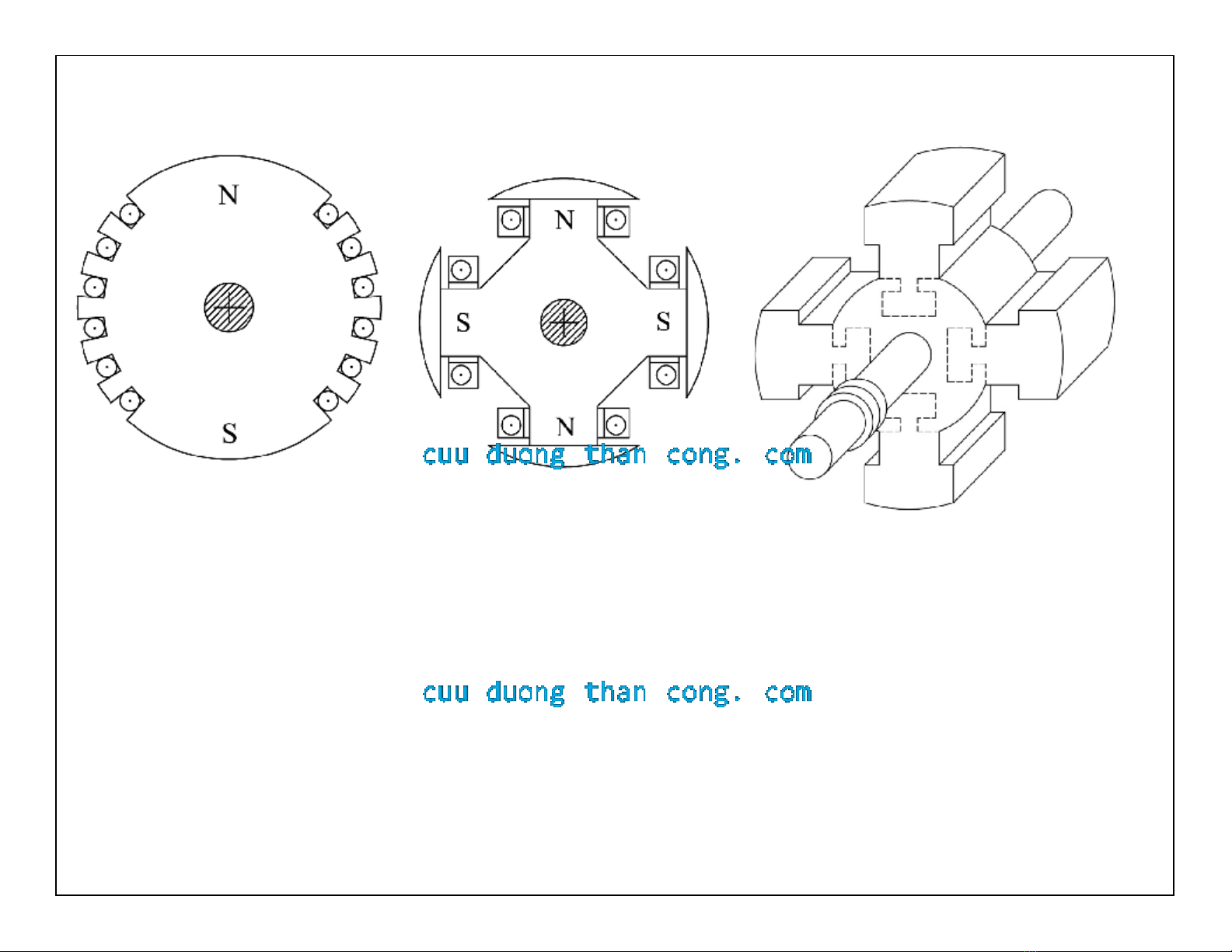 Rôto cực lồi: dây quấn kích từ được quấn xung quanh thân cực từ