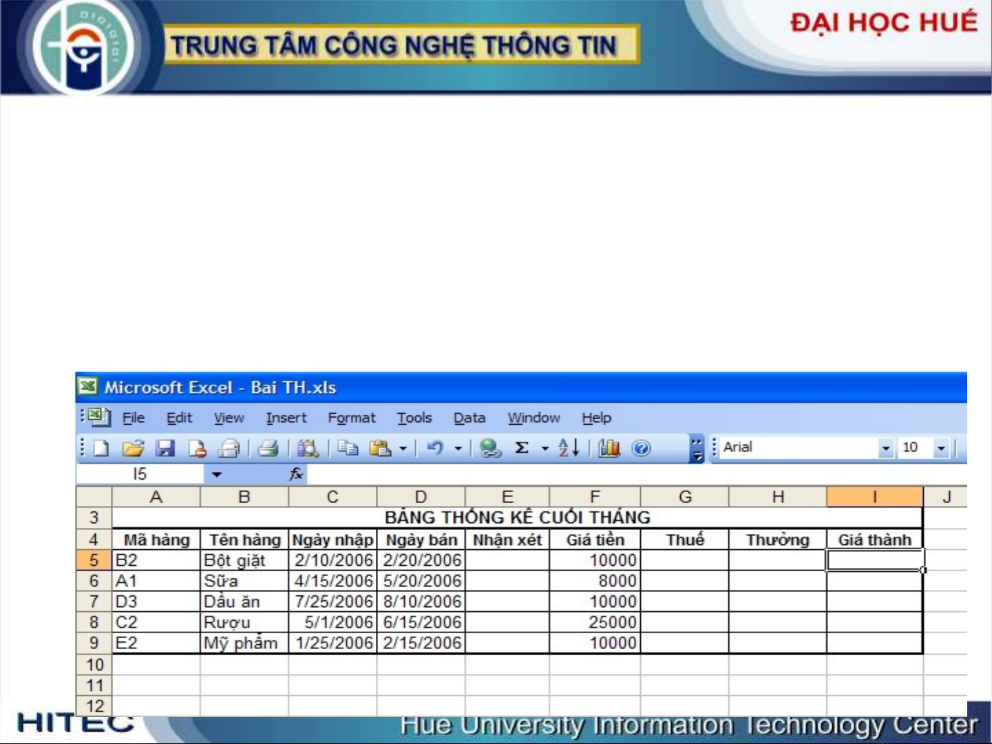 - Khi có thay đ i d li u, b ng tính t đ ng tính toán l i theo s li u ổ ữ ệ ả ự ộ ạ ố ệ