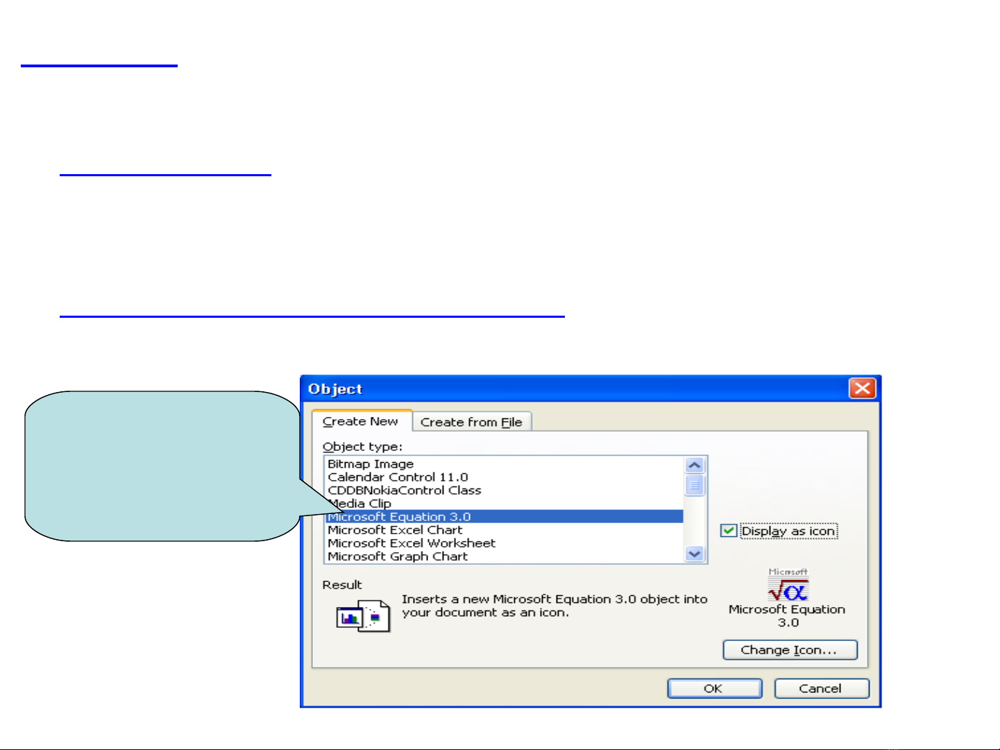 B1: Vaøo Menu Insert Object. . . Xuaát hieän hoäp thoaïi sau: