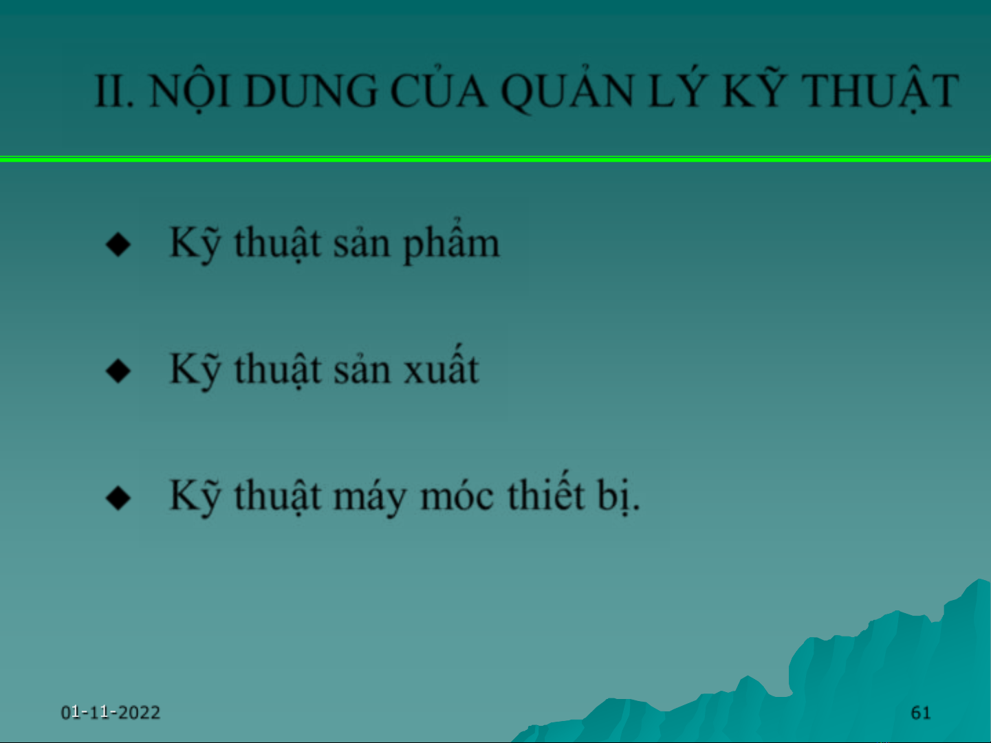 II. NỘI DUNG CỦA QUẢN LÝ KỸ THUẬT