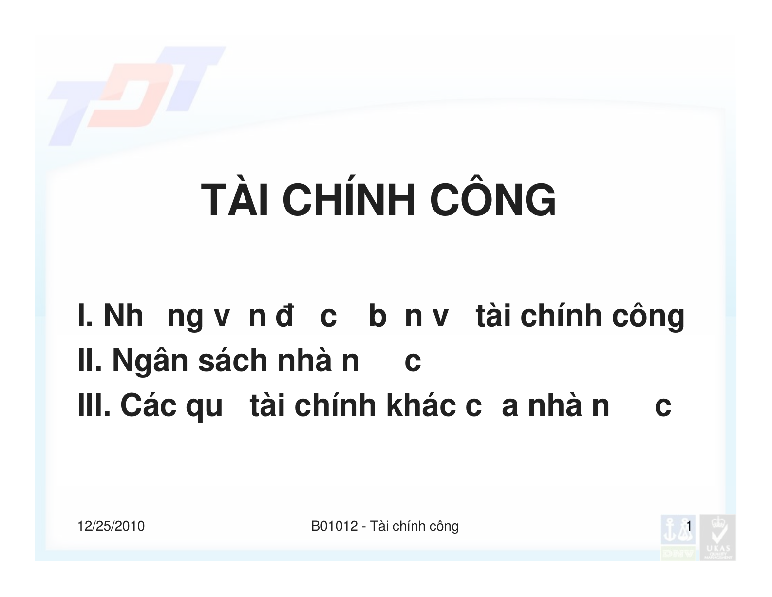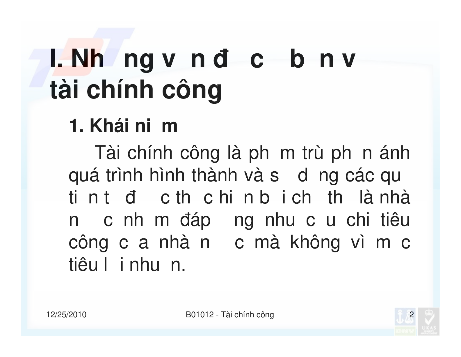 I. Nhữ ng vấ n đề cơ bả n về tài chính công