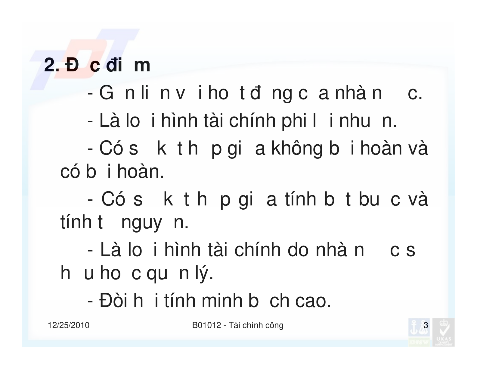 - Là loạ i hình tài chính phi lợ i nhuậ n.