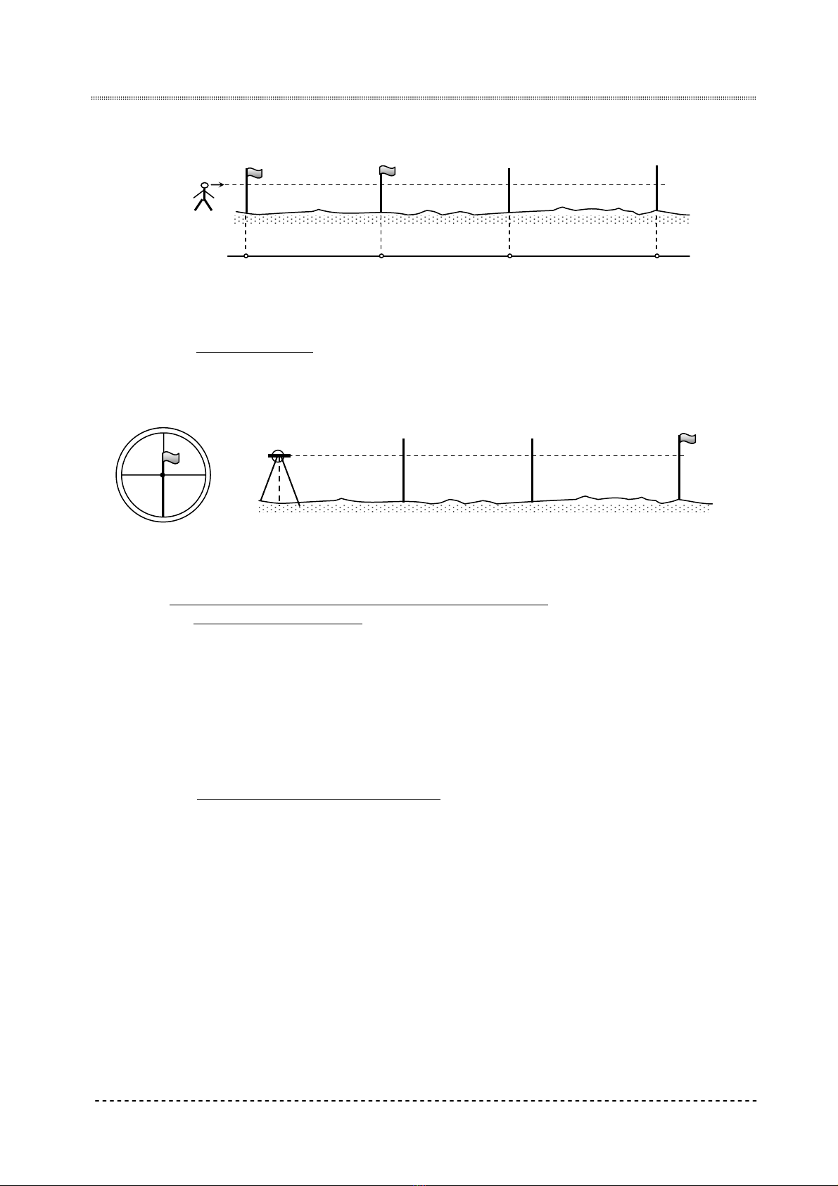 ngắm các tiêu và điều khiển người "trước" xê dịch đầu thước sao cho toàn thân thước nằm trên