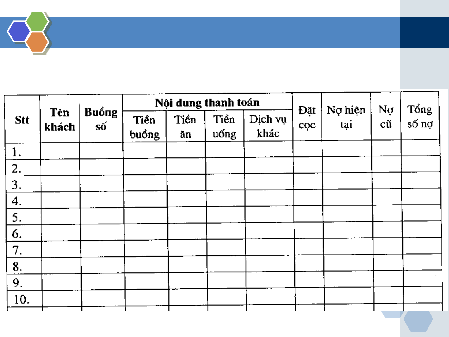 6.1.1 Sổ cái kế toán lễ tân