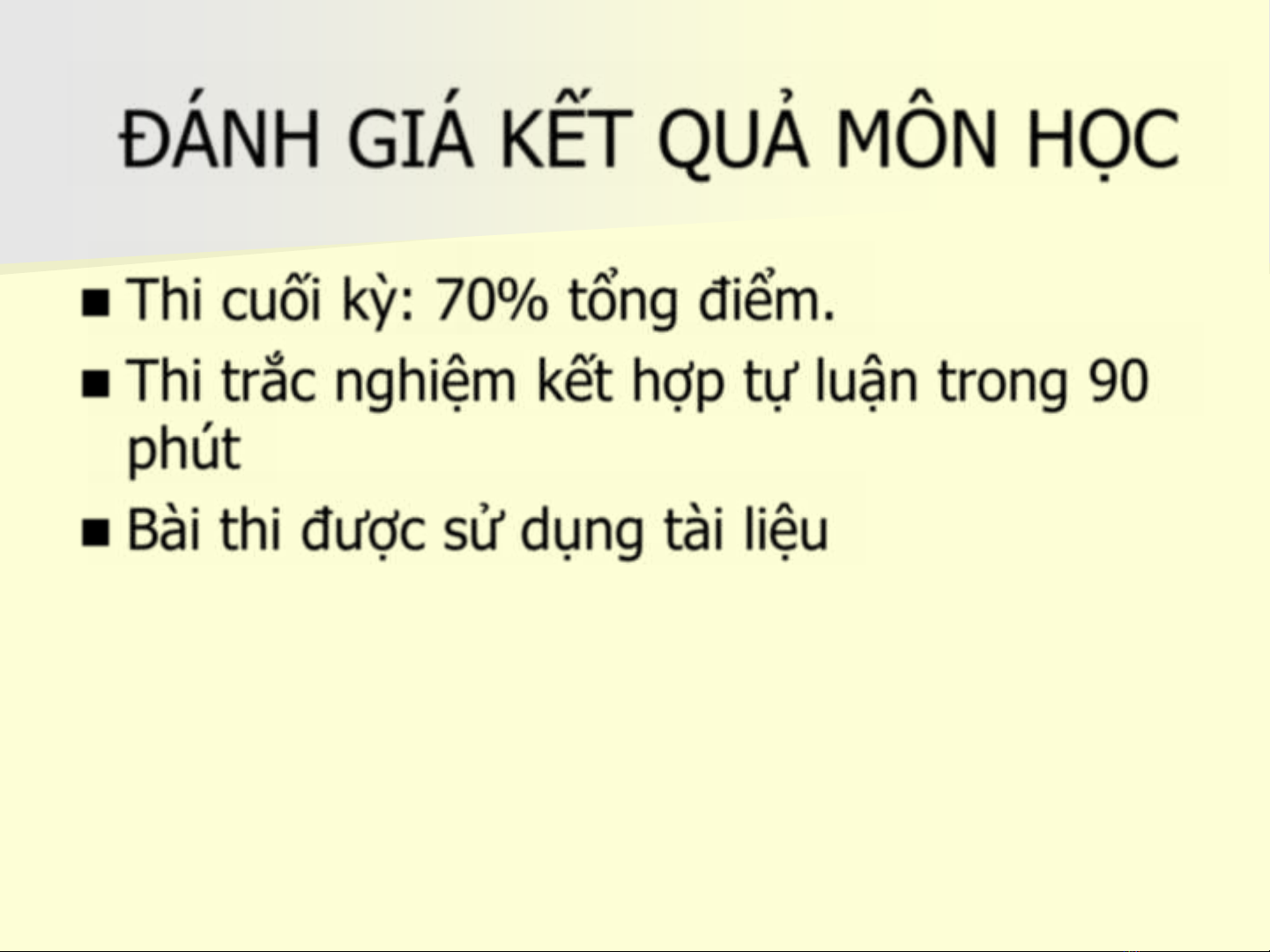 Thi cuối kỳ: 70% tổng điểm.