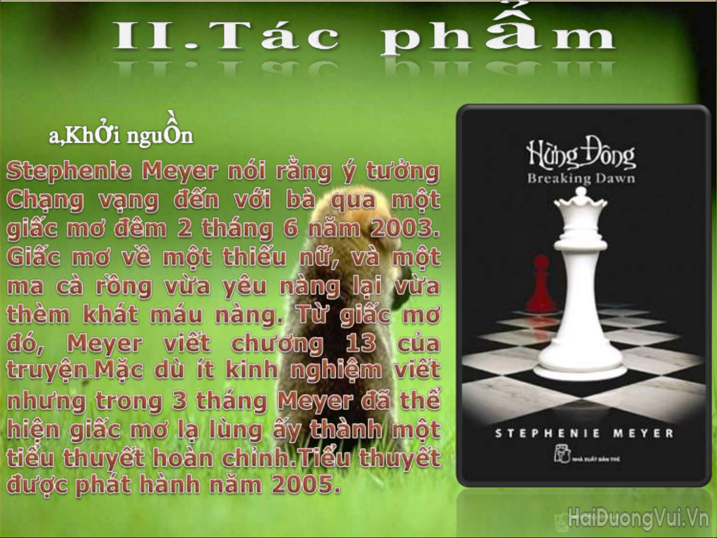 theo Twilight .Trong b ti u thuy t “Ch ng v ng” g ộ ệ ế ạ ạ ồ