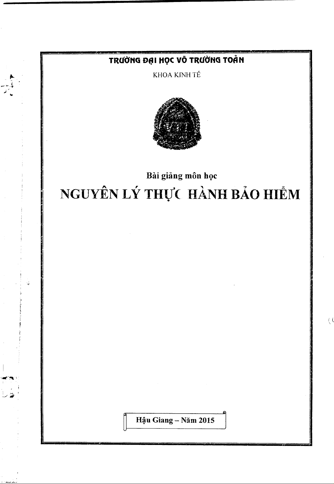 Bài giảng Nguyên lý thực hành bảo hiểm: Phần 1 - Trường ĐH Võ Trường Toản