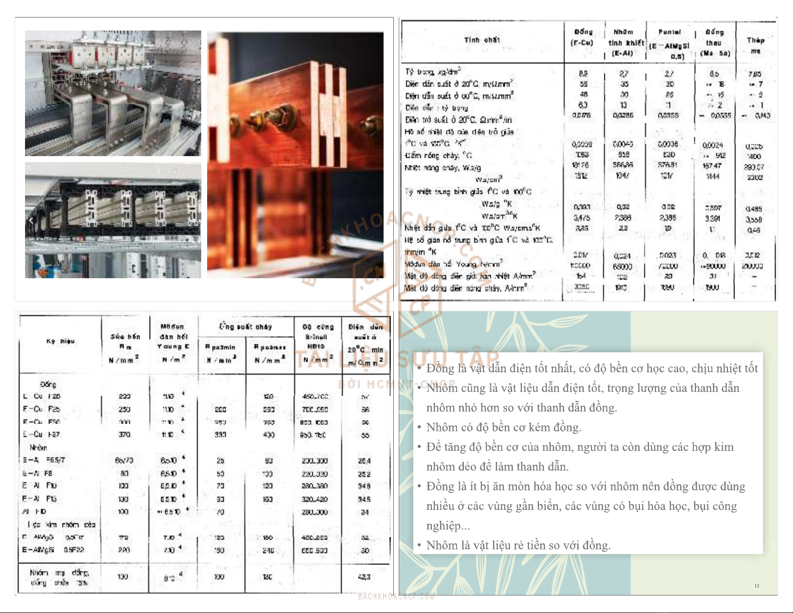 Các thanh làm (E - Cu) nhôm (E - Al);
