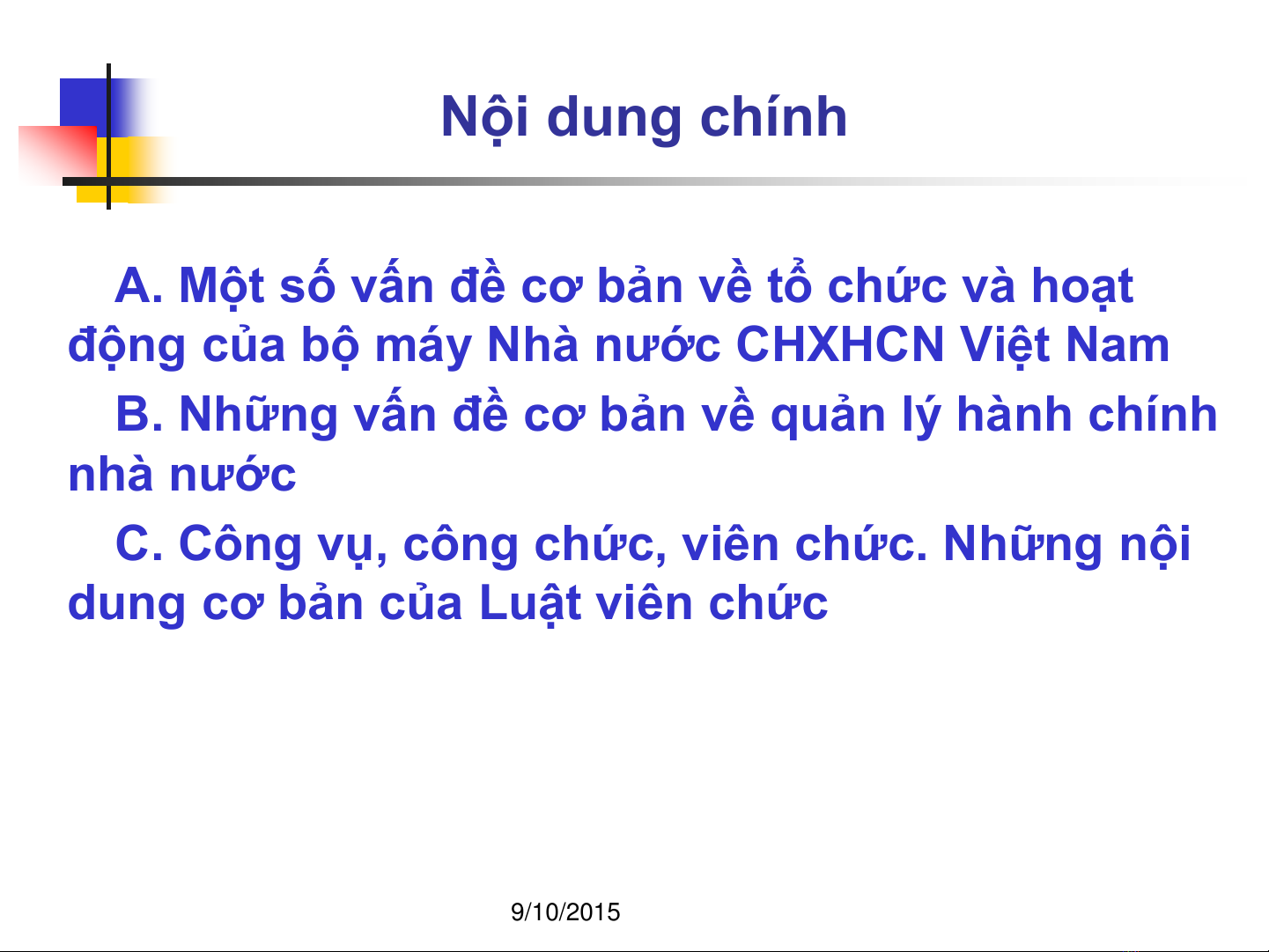 A. Một số vấn đề cơ bản về tổ chức và hoạt