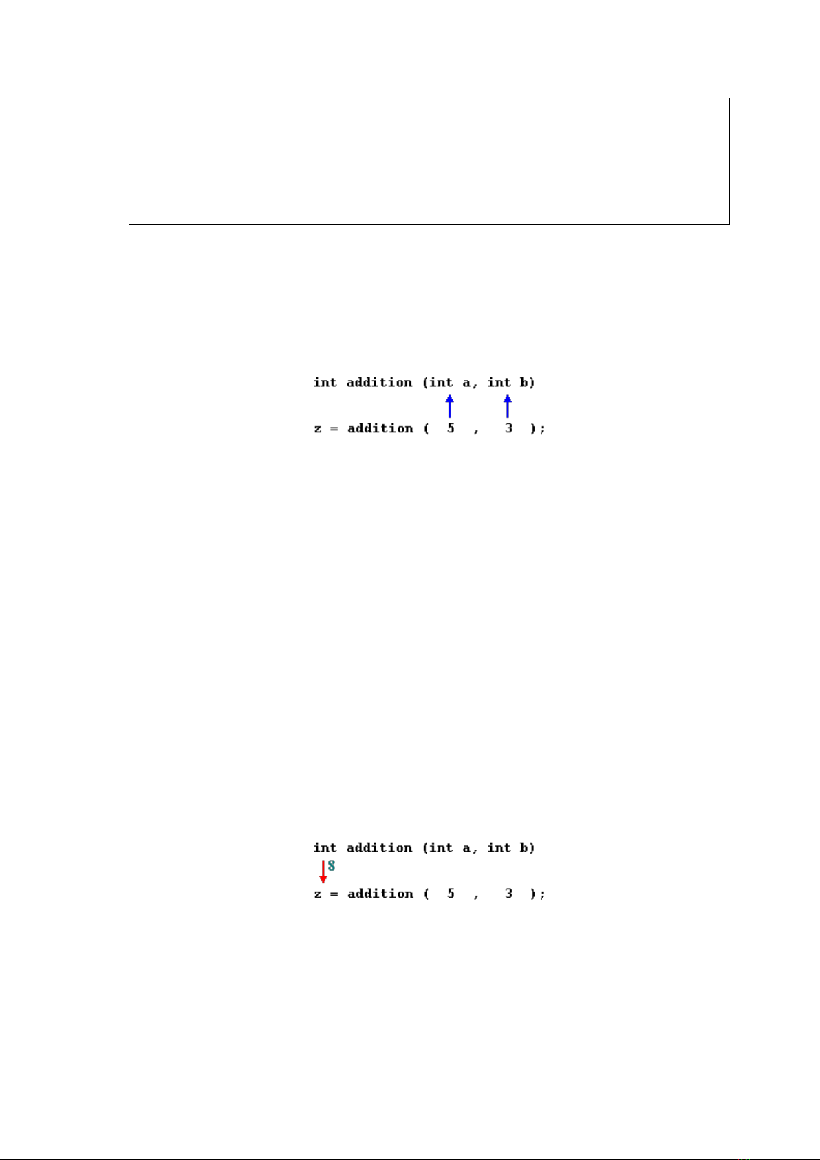 hàm addition. Giá trị của c hai tham số (5 và 3) được copy sang hai biến cục bộ int a